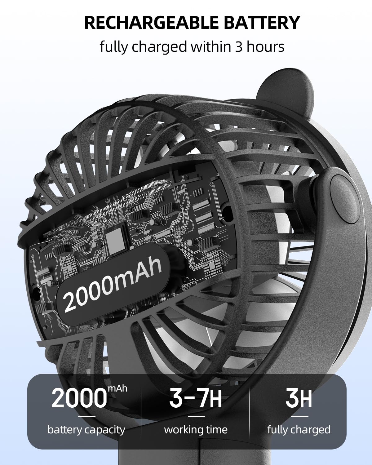PORTABLE & EASY TO USE: The fan is battery-powered, so you can take it with you wherever you go. It is lightweight and compact, making it easy to carry and store. The built-in rechargeable battery provides long-lasting power and can be recharged via USB.