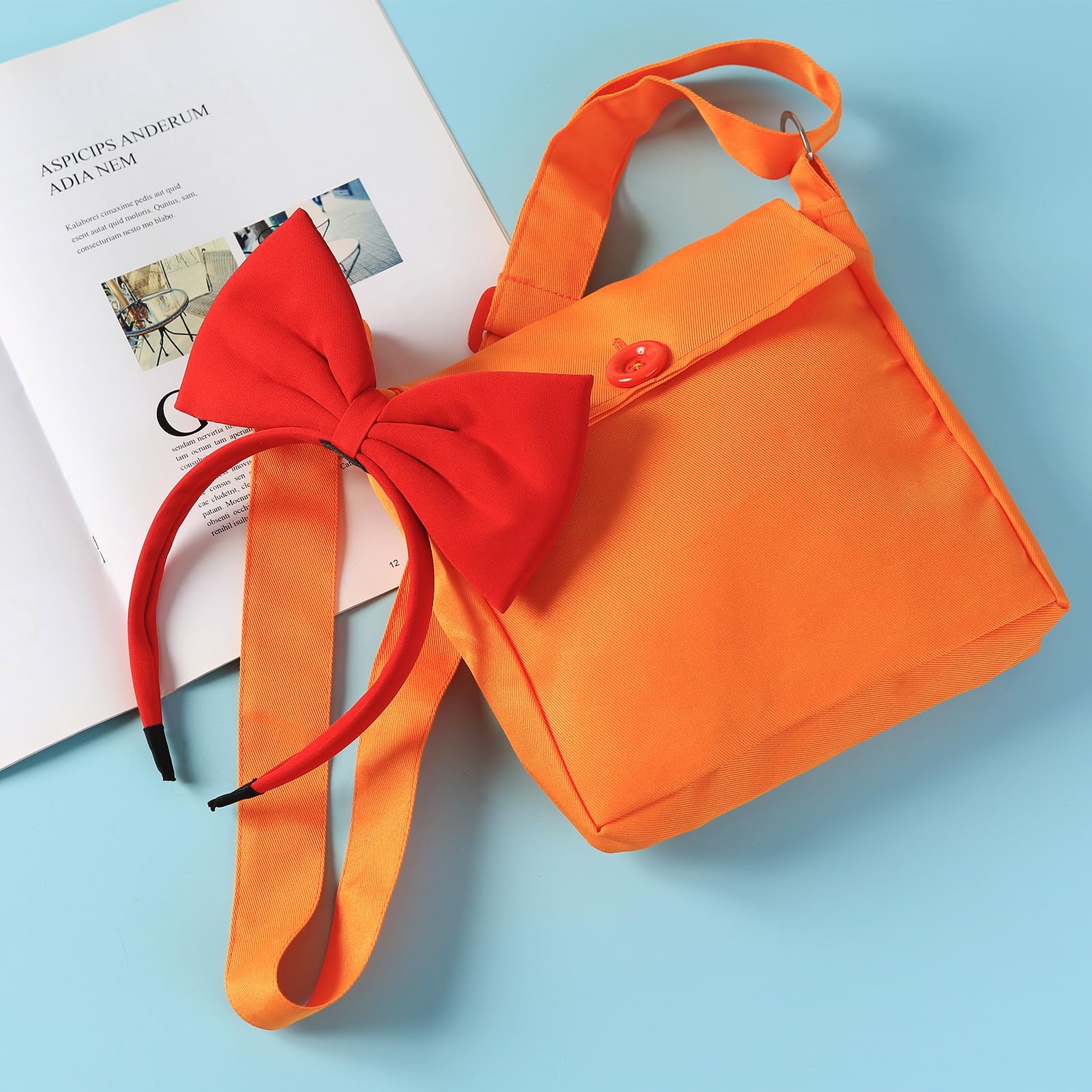 Material: Big red bow headband is made of soft material, comfy and sturdy. This orange bag made of high-quality fabric, with adjustable shoulder straps, durable and wear-resistant.