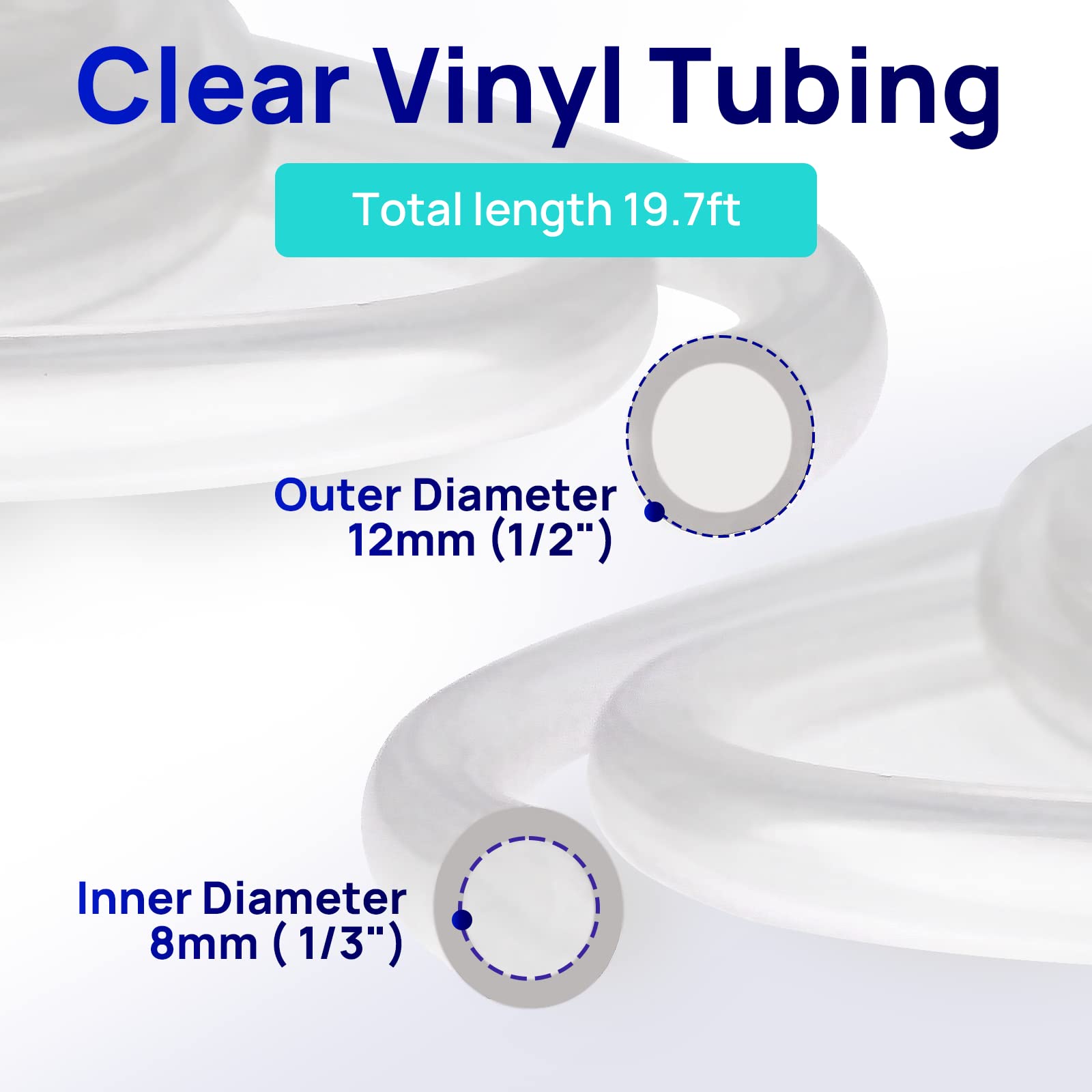 AQUASTRONG 1/3'' ID X 1/2'' OD PVC Clear Vinyl Tubing for Condensate Tank Pump, 19.7ft Length