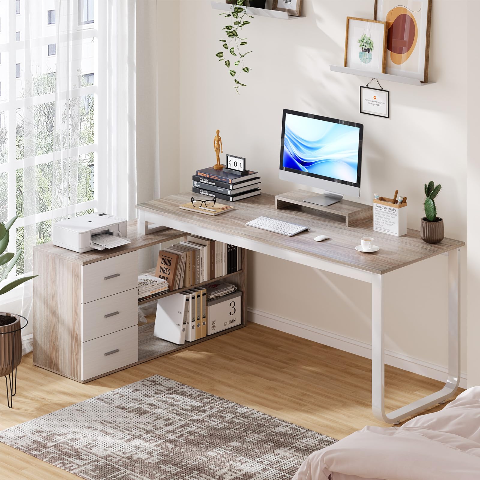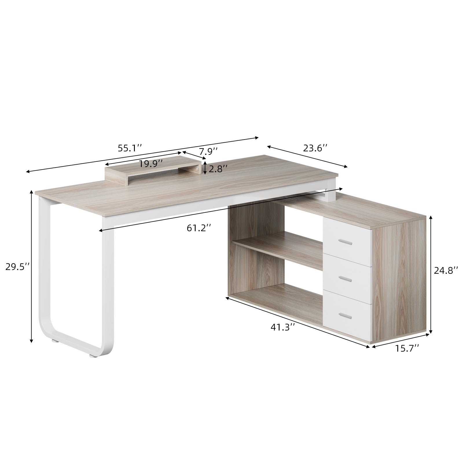 Expand Your Workspace: Our swing l shaped desk with drawers offers 55 inch desktop space can easily reversible accommodate writing, put your computer or laptop.The enlarged craft table top provides plenty of space for printers, craft sewing machines, convenient for your office work and craft work