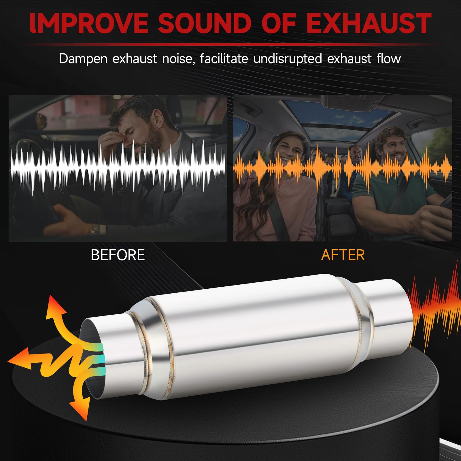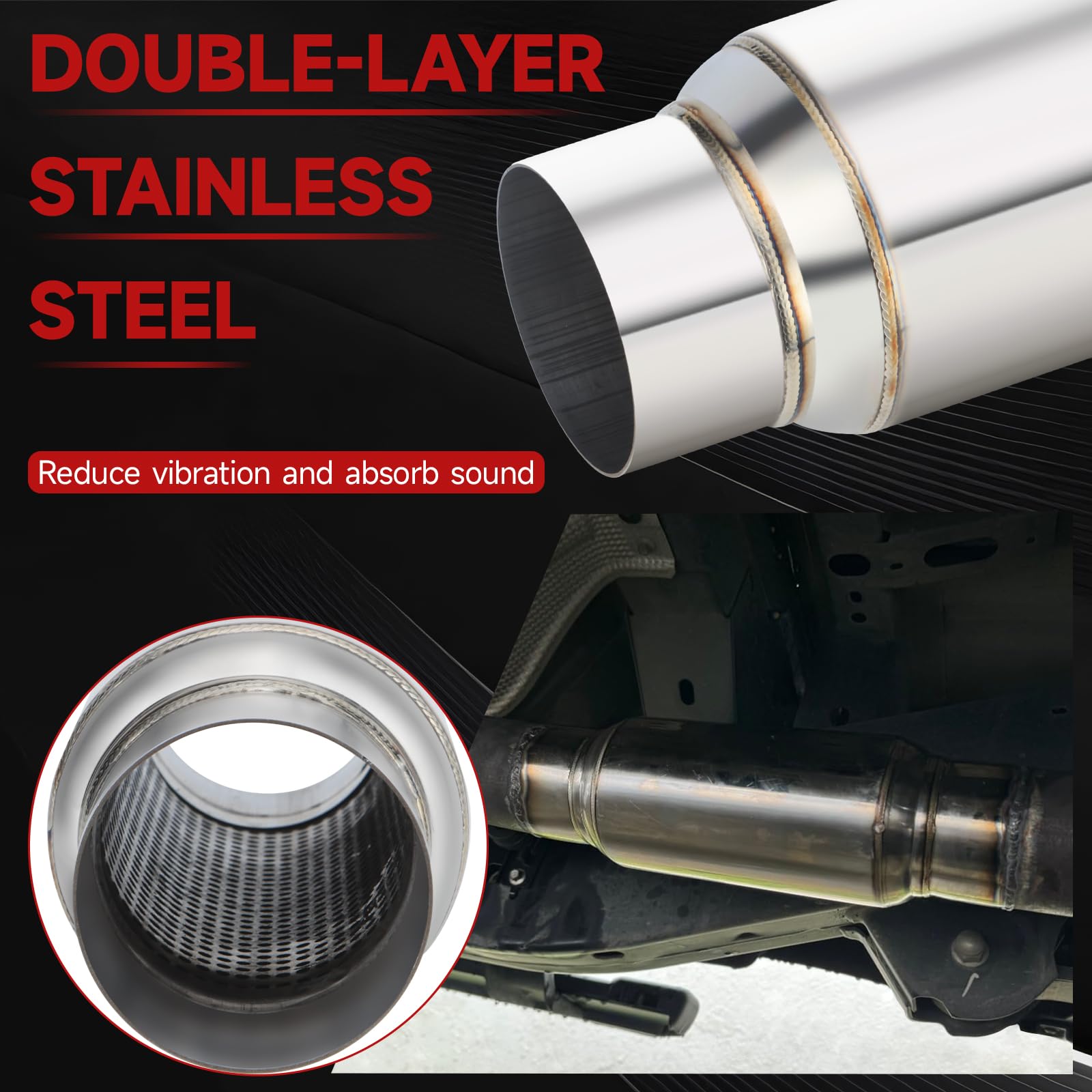 【Special Design】Straight-through design, dark tone muffler, reduce engine noise. Promotes uninterrupted exhaust flow.