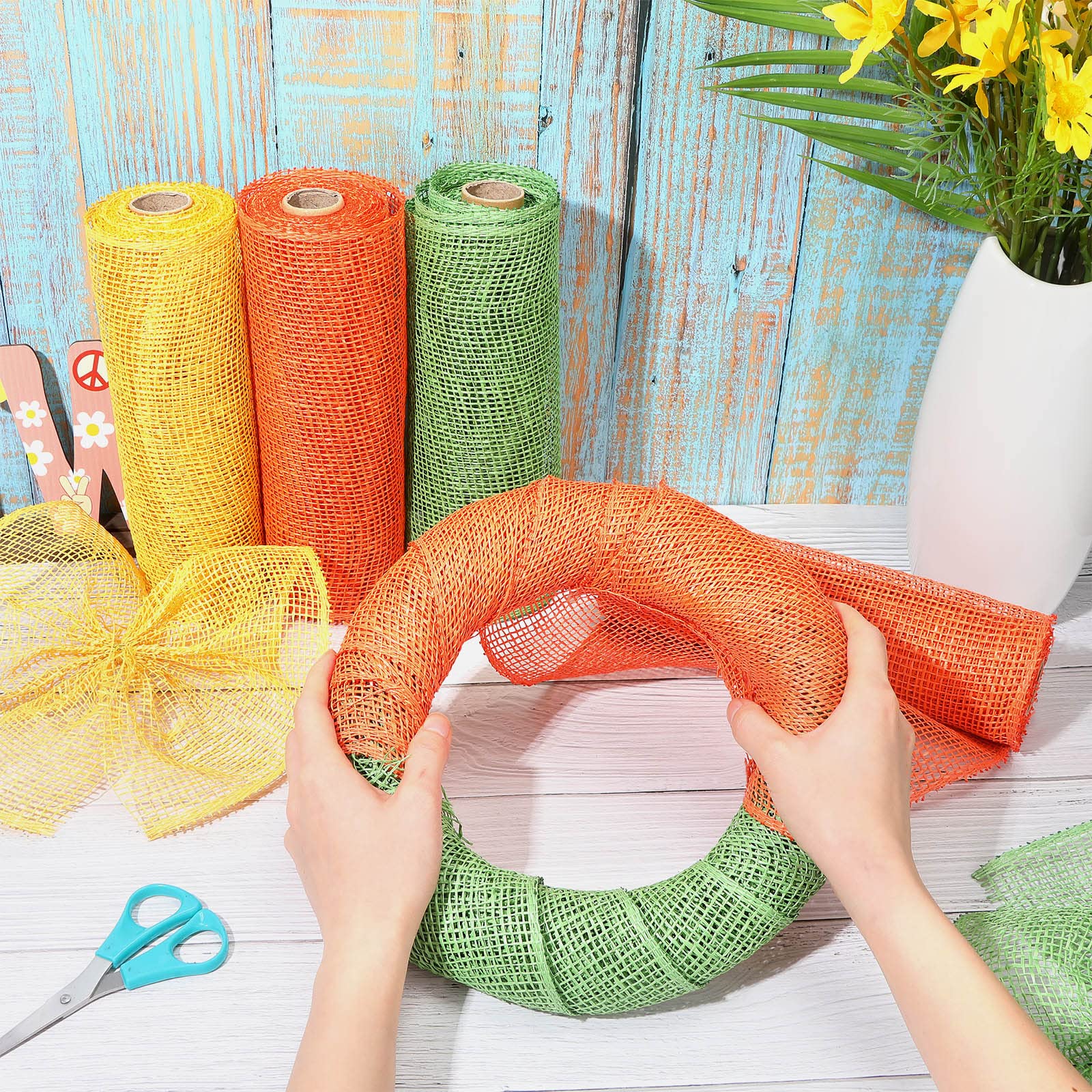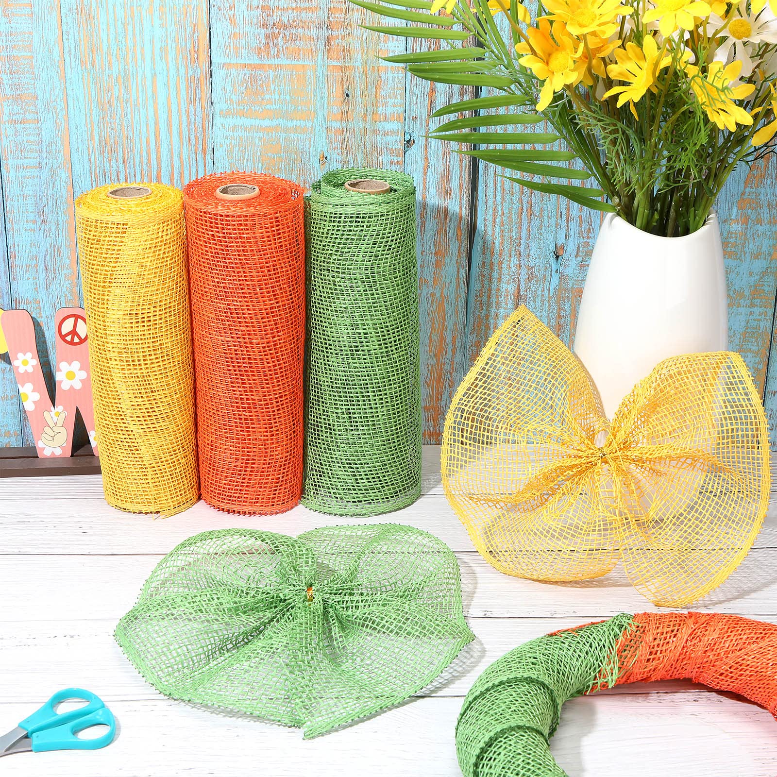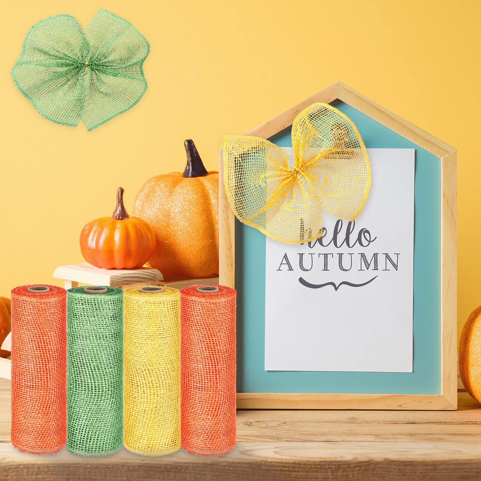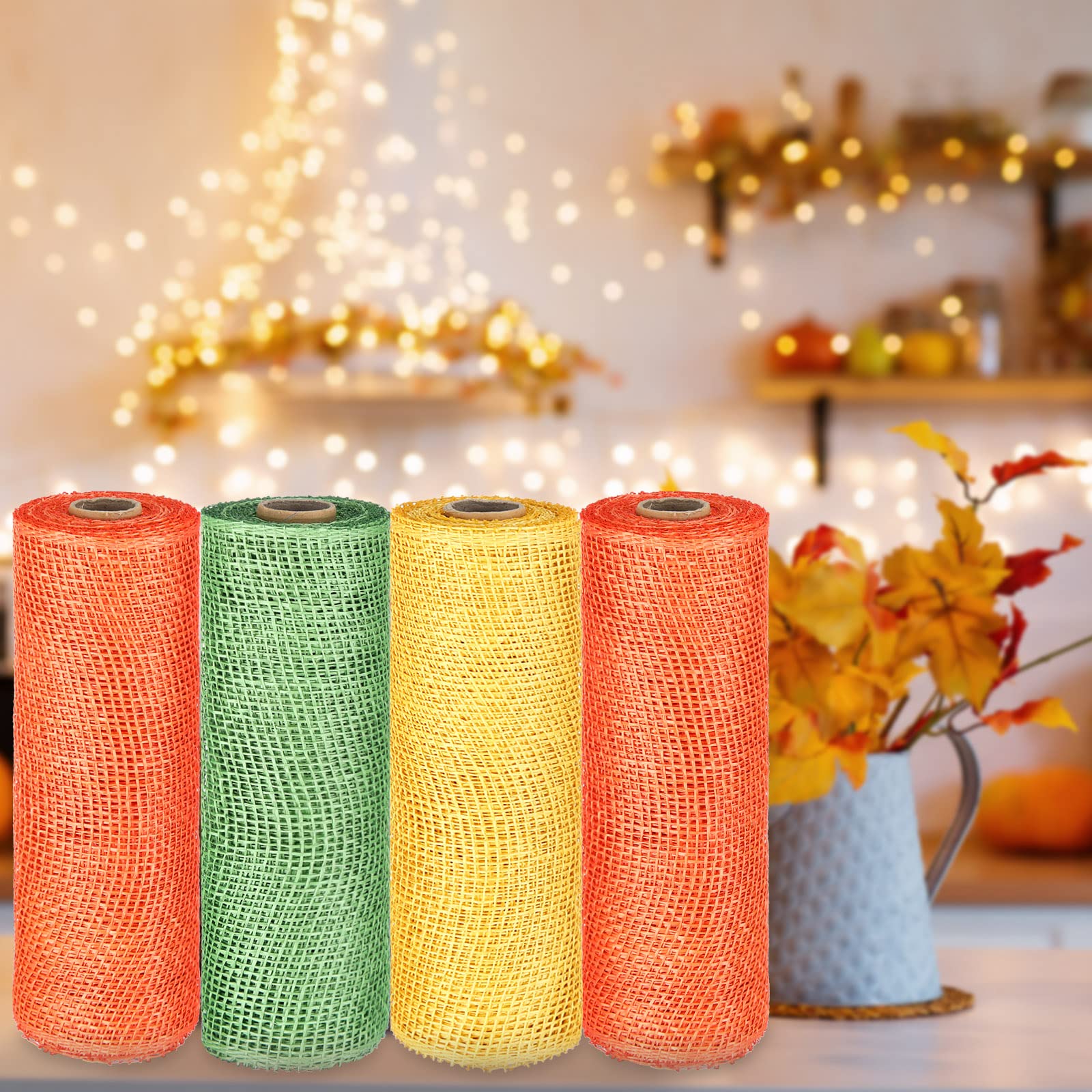 What you will receive: the package comes with 4 rolls of poly burlap rolls in 3 different colors, they are orange, yellow, and green, various enough to satisfy your different preferences and decorating demands in daily life