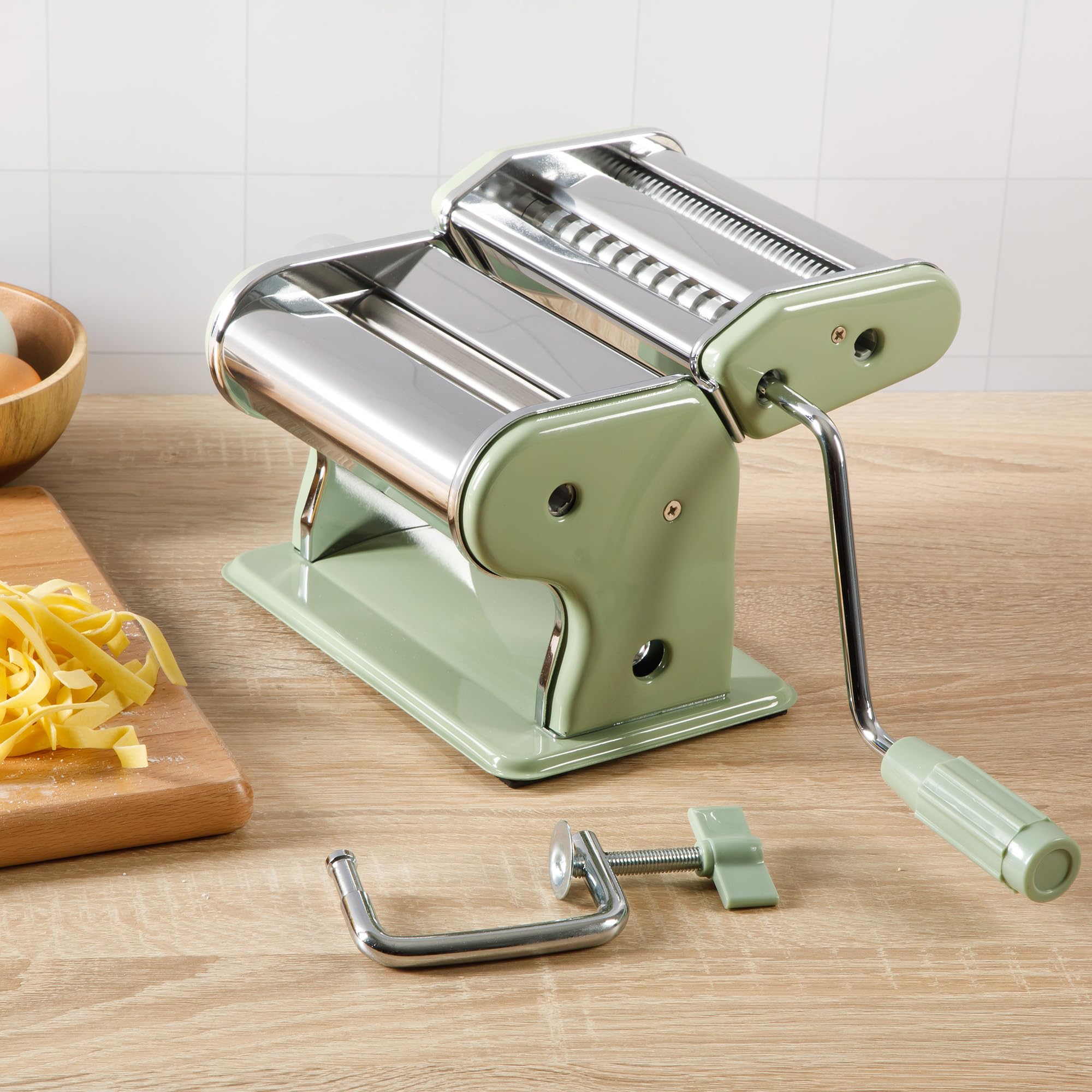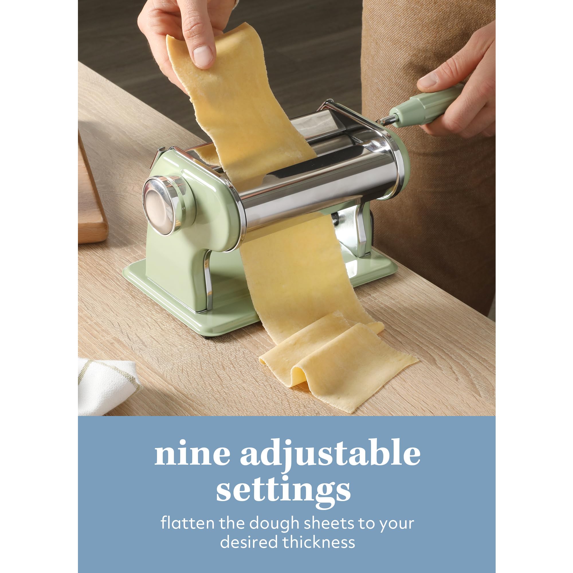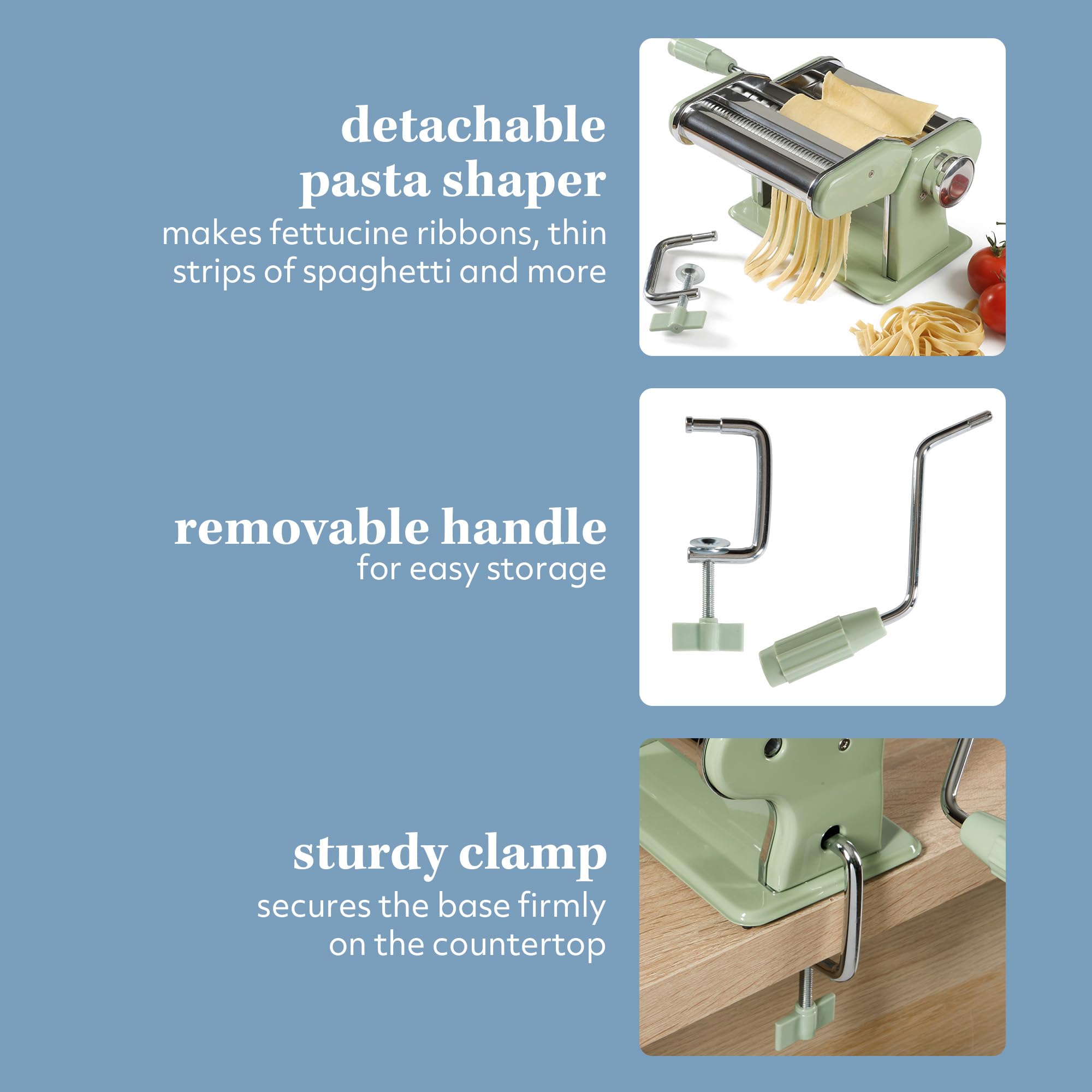 SHARING HOMEMADE PASTA-BILITIES: detachable pasta shaper cuts ribbons of fettuccine and spaghetti strips. whether you're in the mood for silky layers of lasagna or smooth and classic noodles, this hand crank pasta machine delivers consistent rolling performance.