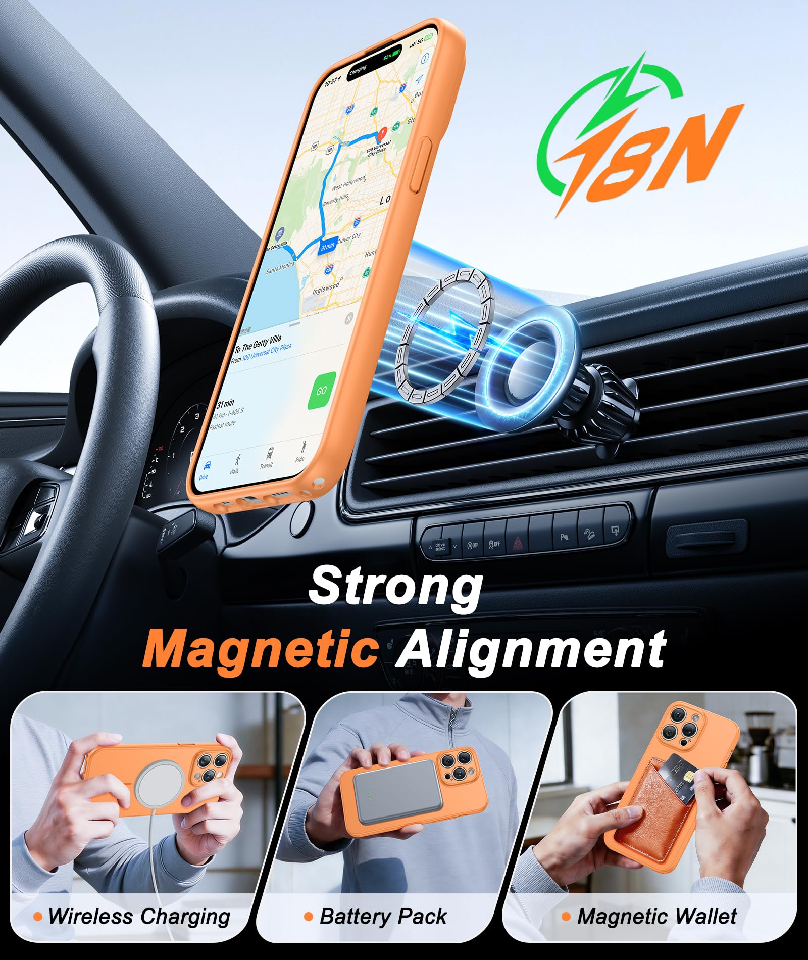 Ultra-Strong Magnetic: Built with 38 built-in N56 powerful magnets providing 18N of magnetic force—nearly 7 times stronger than ordinary cases, never Shaken off Even Violent Swinging. Compatible with MagSafe chargers for fast wireless charging and all accessories like magnetic power banks, card holders, wallets, and car mounts
