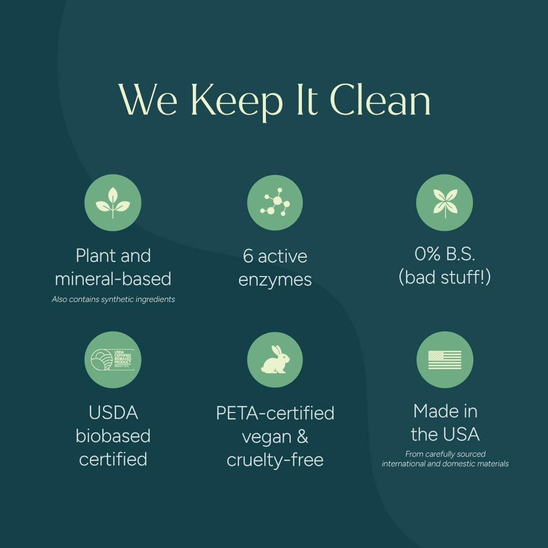 Expertly Crafted with Care - Behind every bottle is a team of chemists and PhDs who prioritize your family's safety. Using plant-powered enzymes, our stain remover ensures peace of mind for homes with little ones and furry friends.