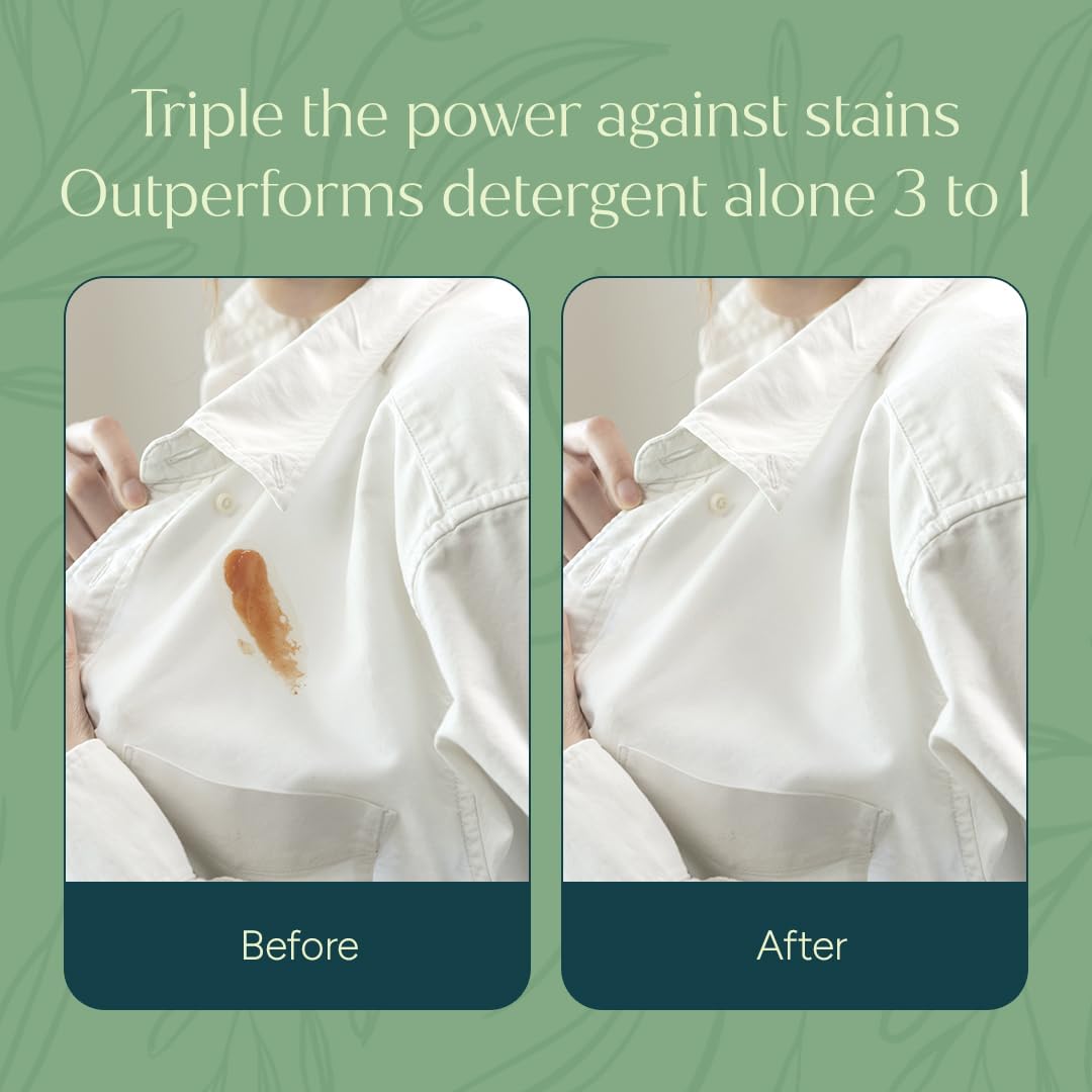 Harmonious Stain and Odor Solution - Trust our stain remover for clothes to gracefully handle a range of stains and odors. Whether it's grass, red wine, makeup, or oil, our refreshing formula ensures your clothes look and smell as wonderful as you.