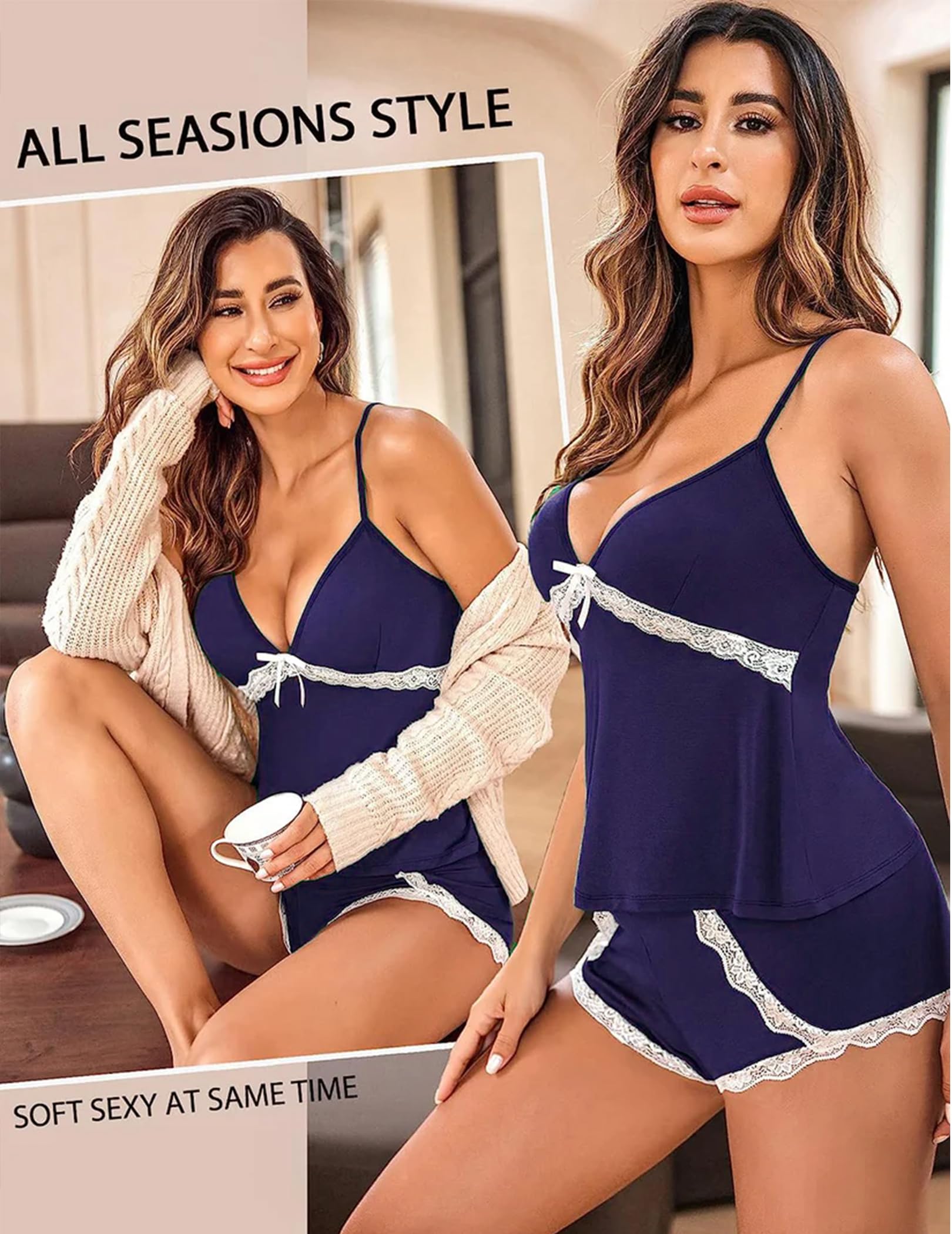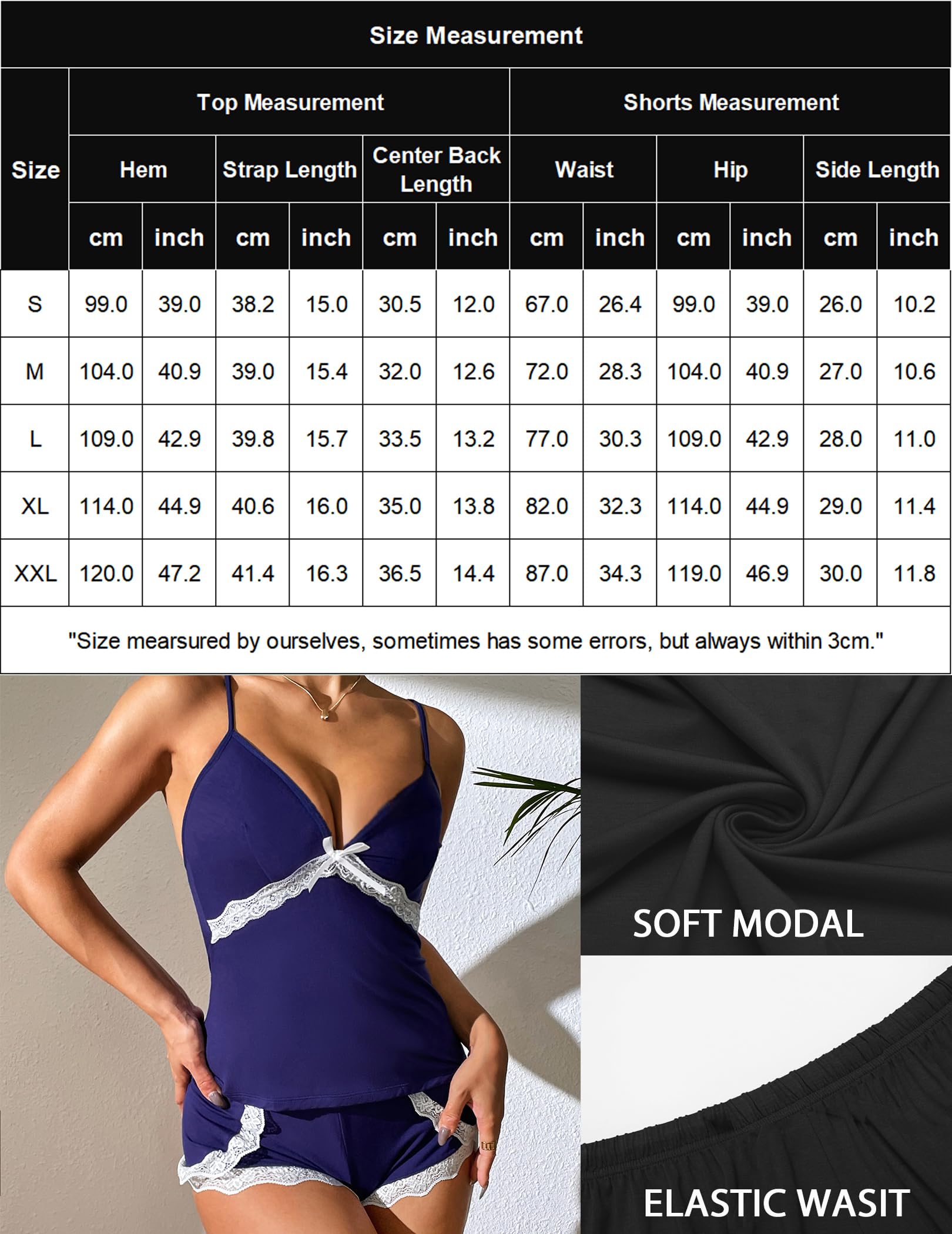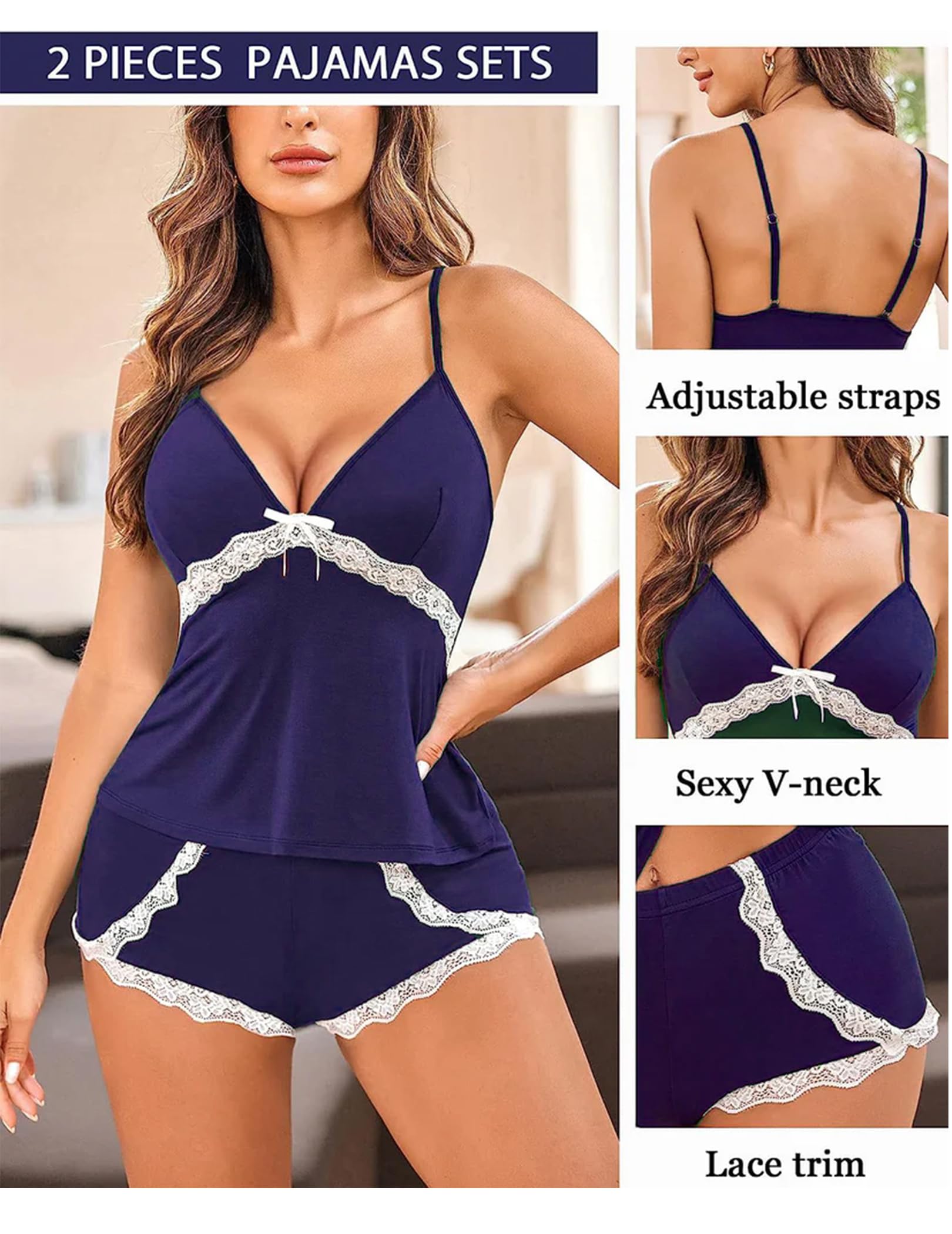 【Package Content】: 1 x Cami Pajama Top 1 x Lace Trim Pajama Shorts