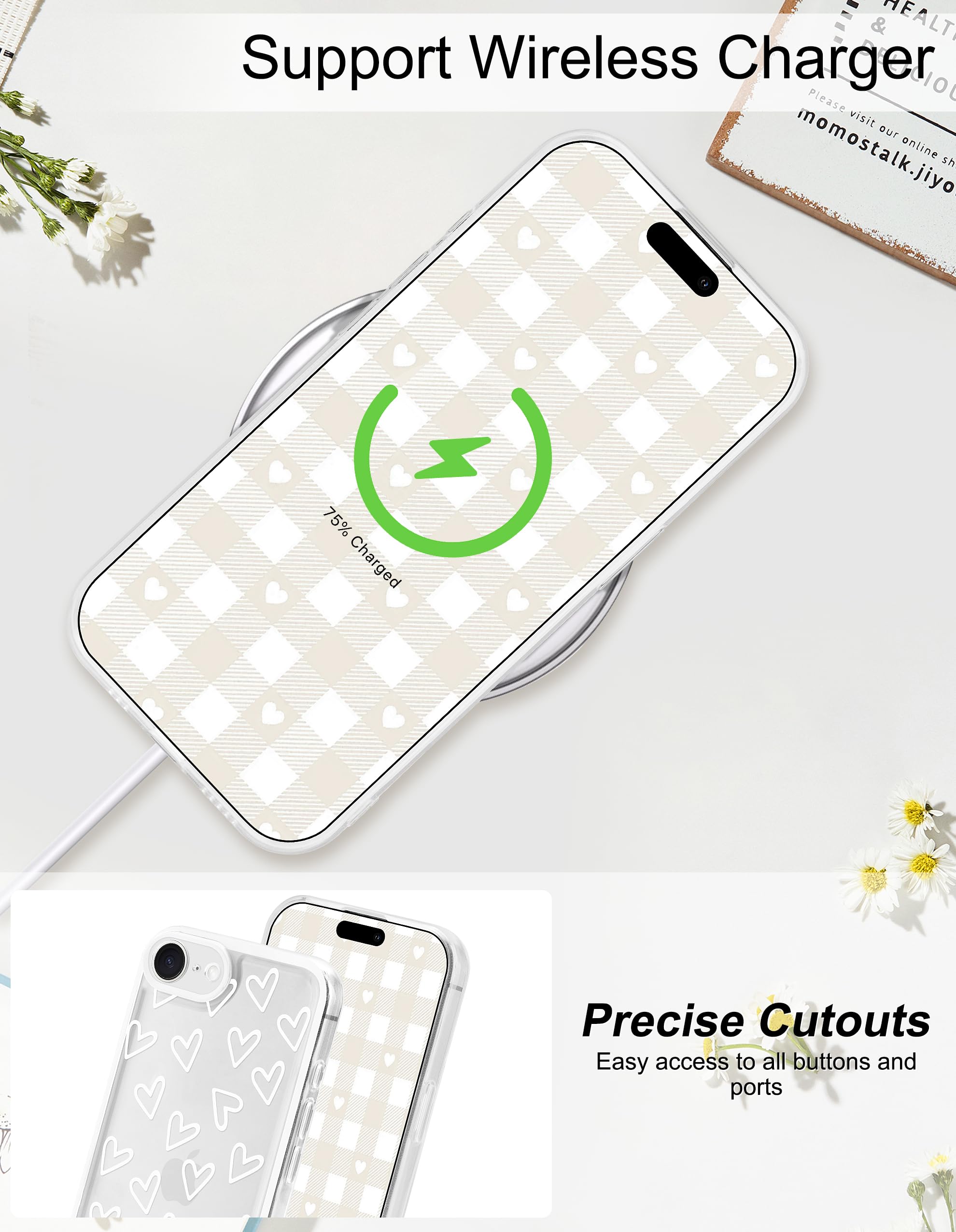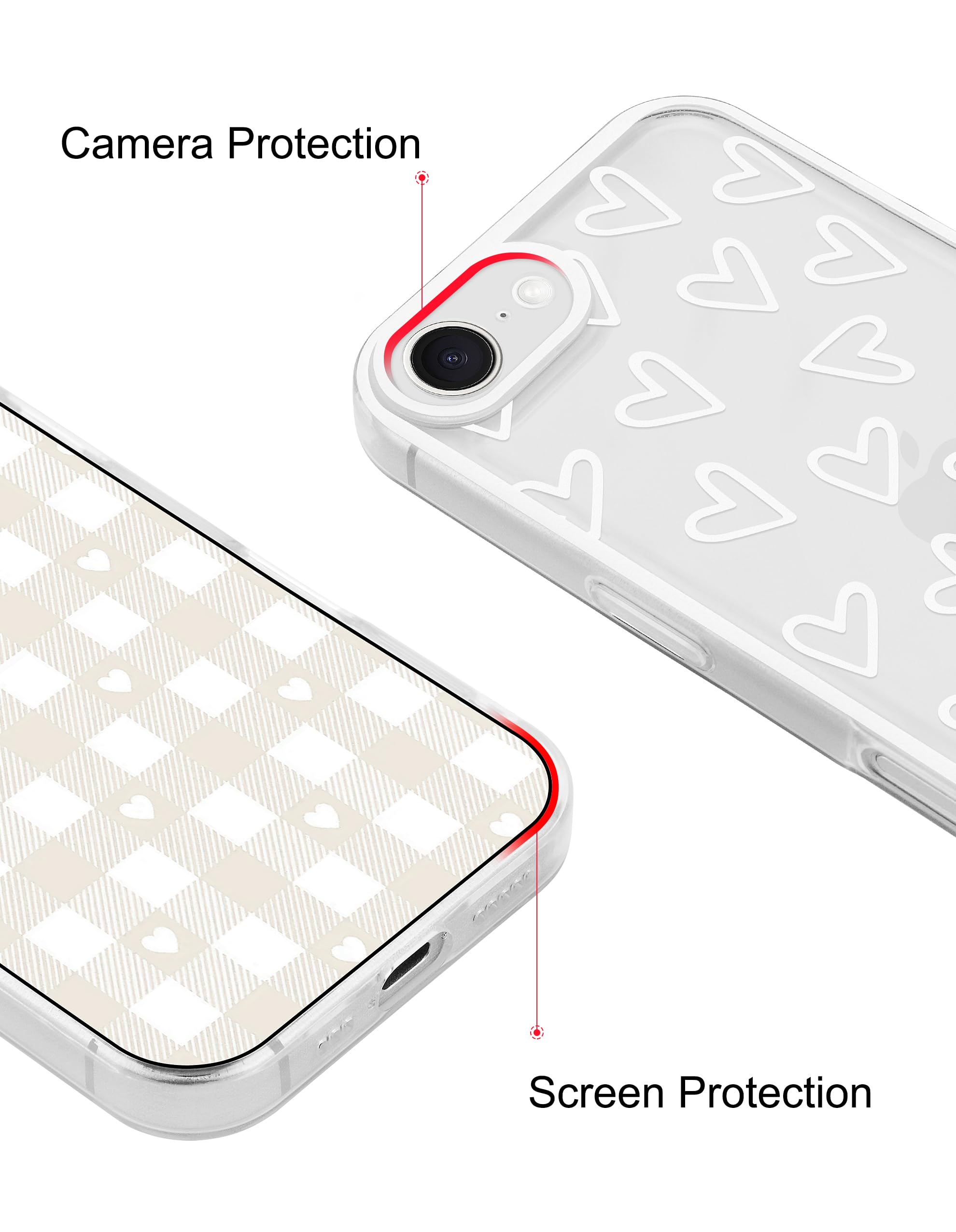 Compatible Model: This pretty white heart phone case is compatible with iPhone 7 / 8 / SE, not fit for other phone model. Please confirm your phone model before purchasing. Compatible with wireless charging