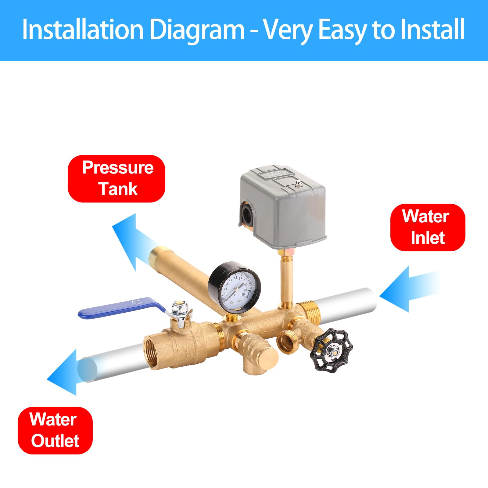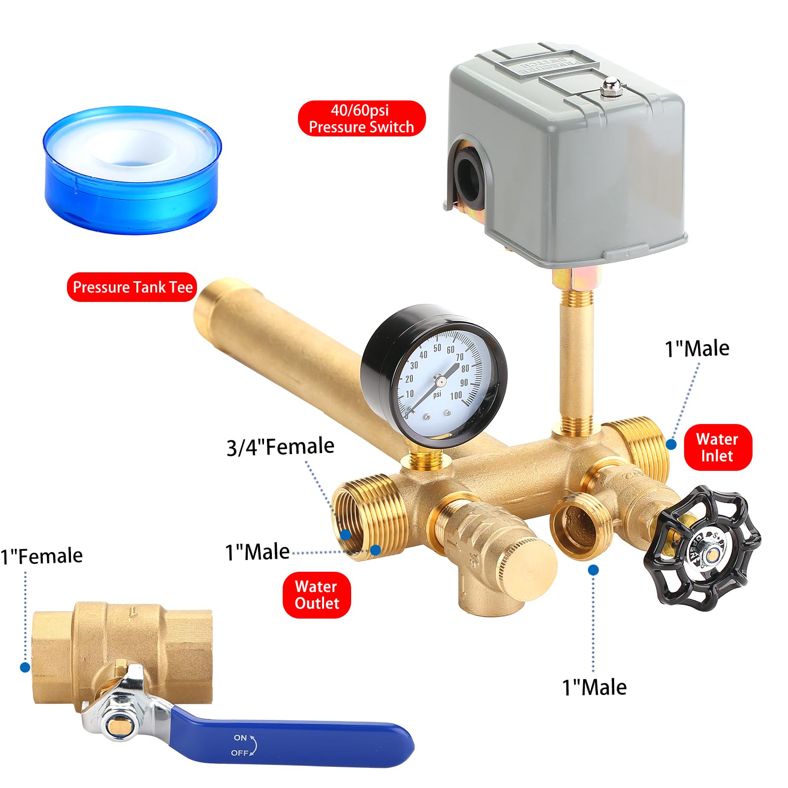 LIFETIME WARRANTY: Our Pressure Tank Tee Kit is made of high quality brass, which has an extra long life and comes with a lifetime warranty. Please buy with confidence, if you have any questions about the use, please feel free to contact us through Amazon.