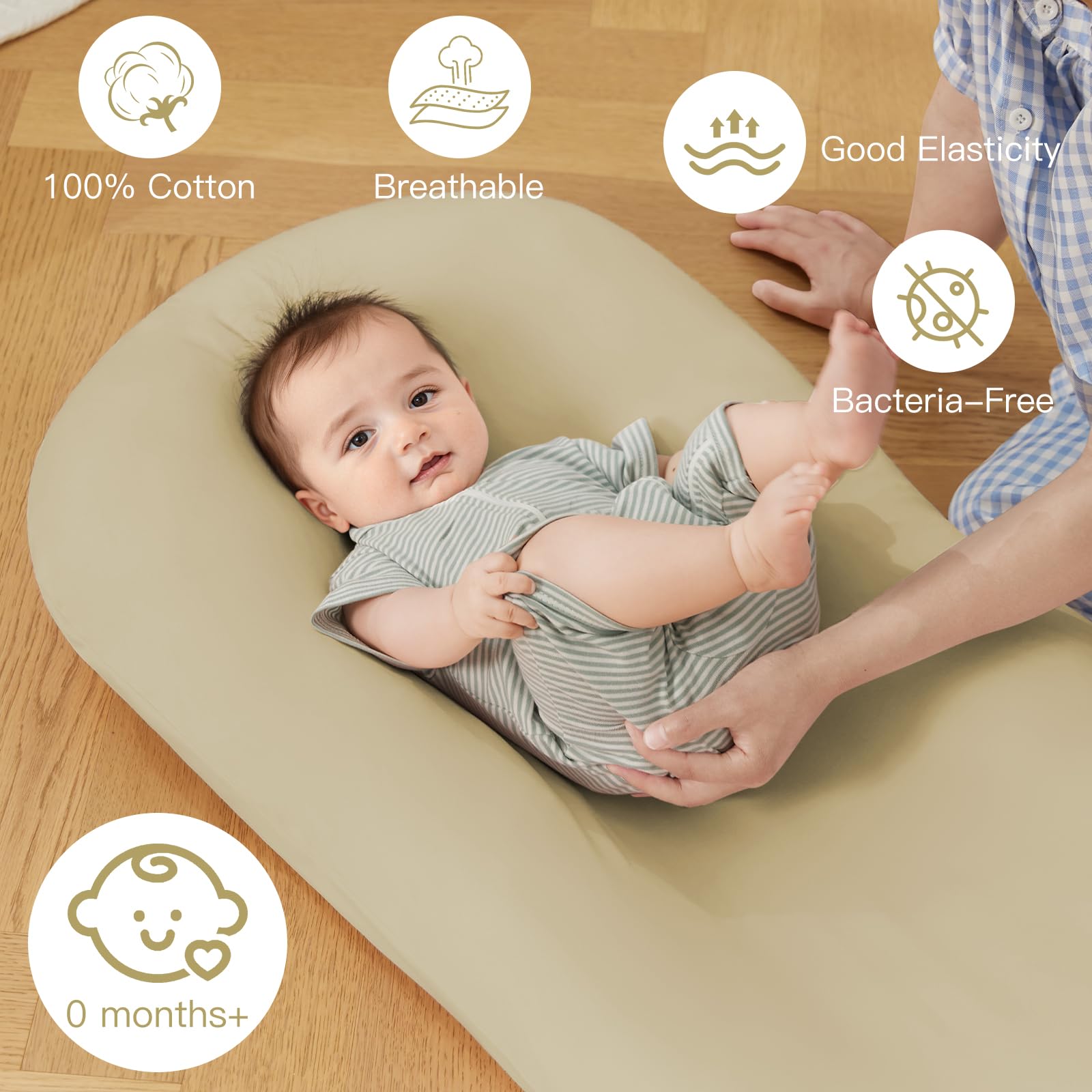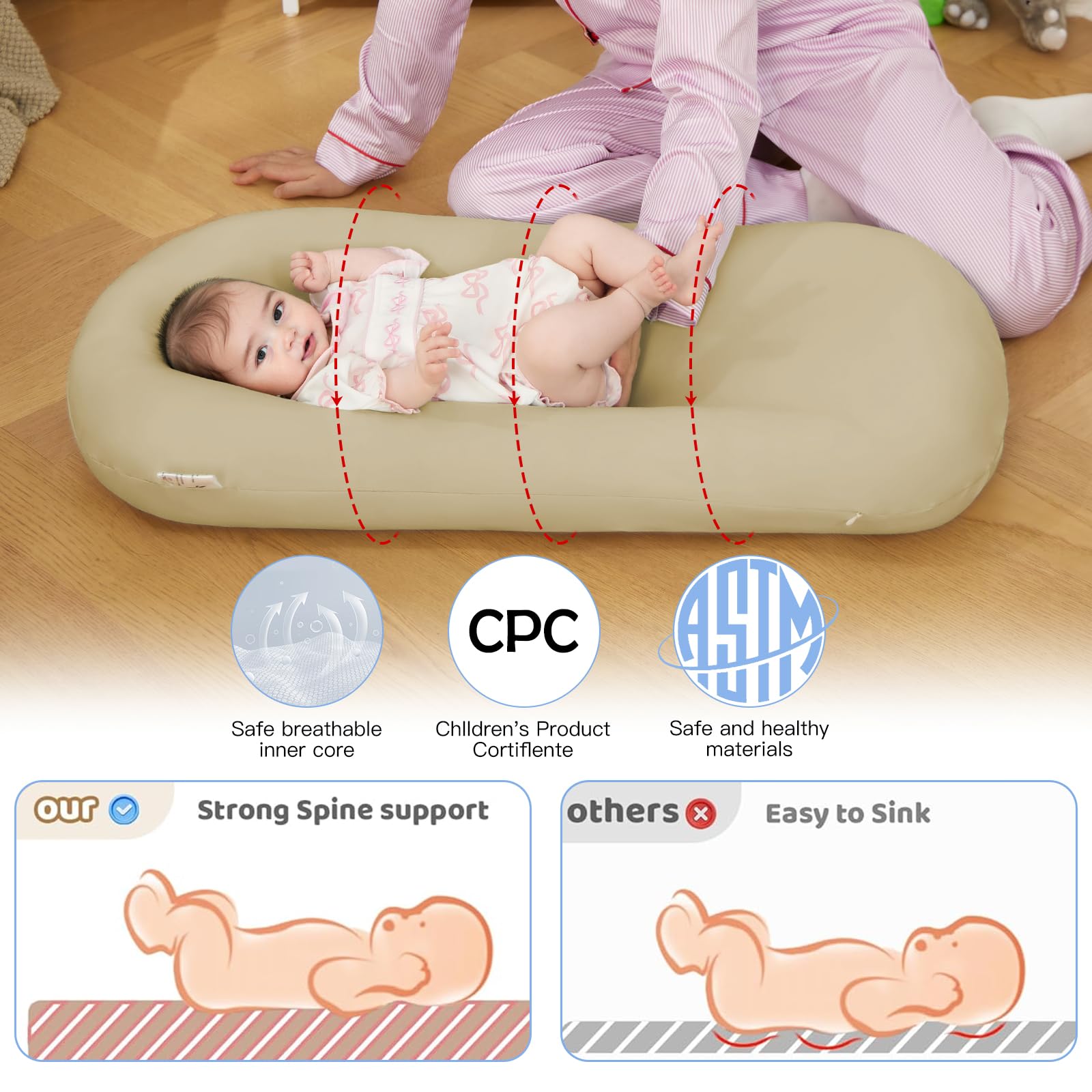 ❤️【Newborn Lounger】Baby lounger is covered with super soft and breathable pure cotton & 3D polyester as the filling's material, It's CPC, and CPSIA-certified, it's safe for your baby.