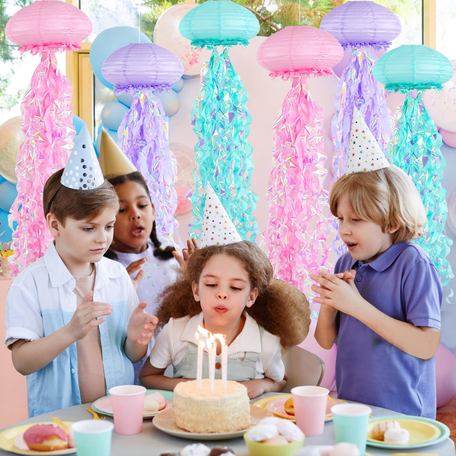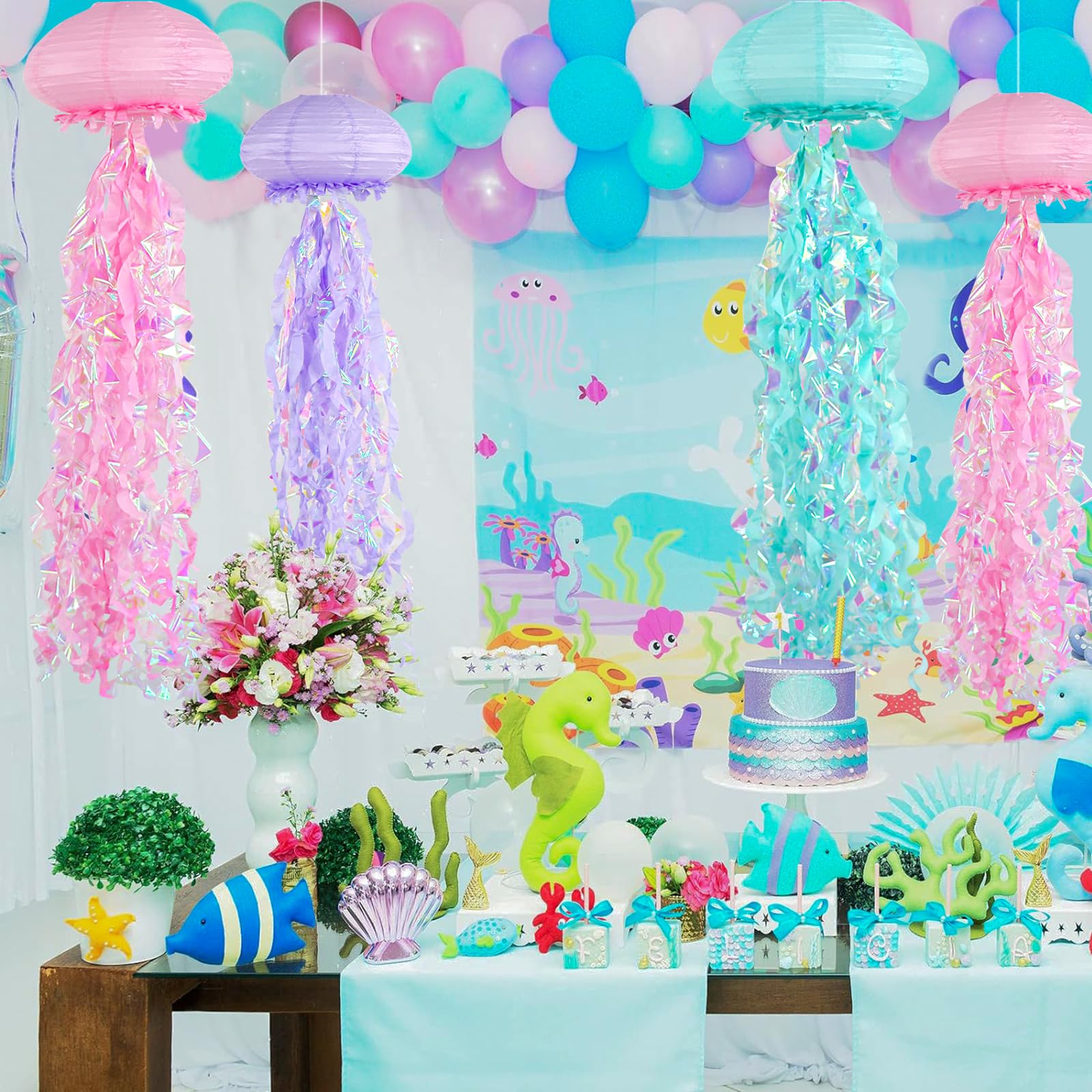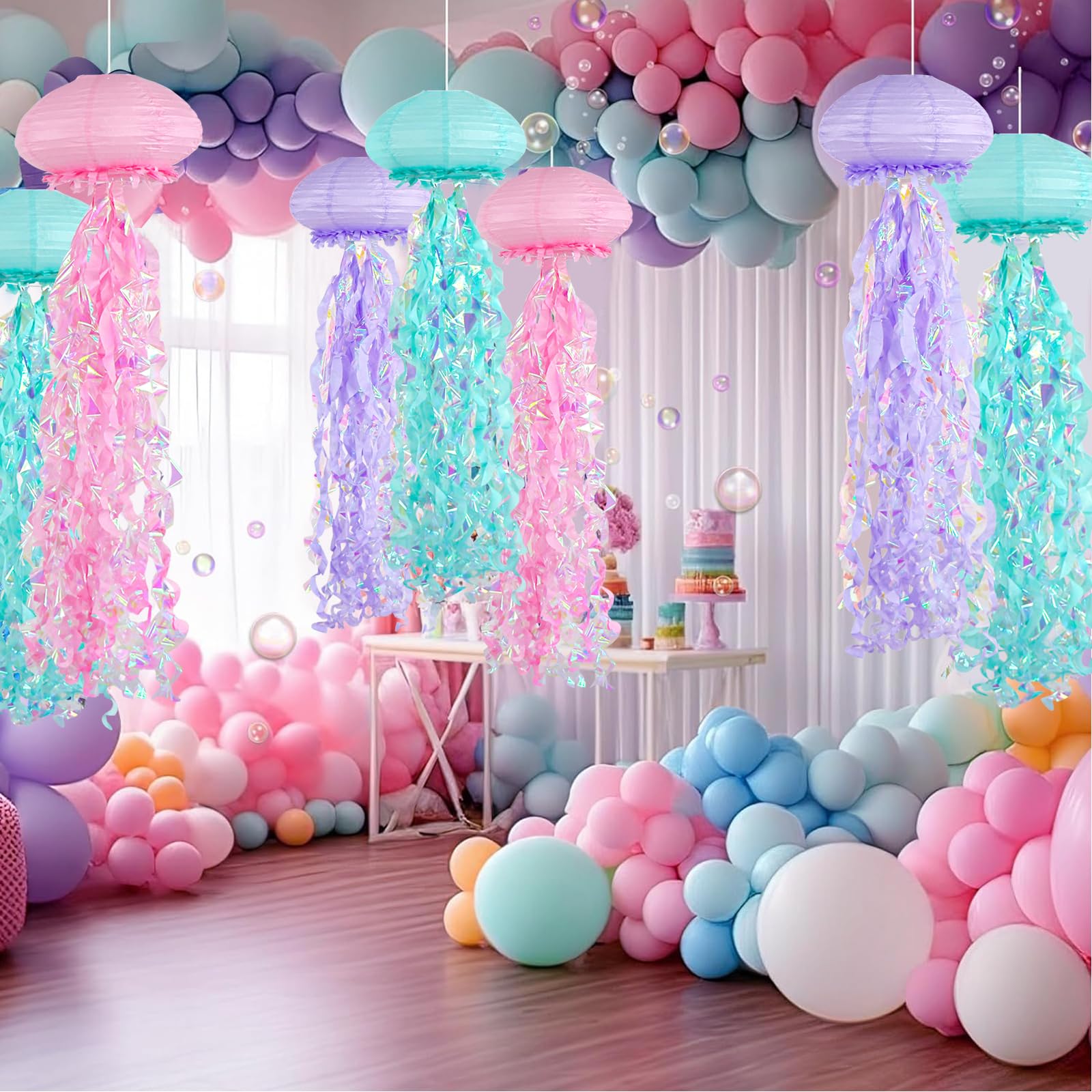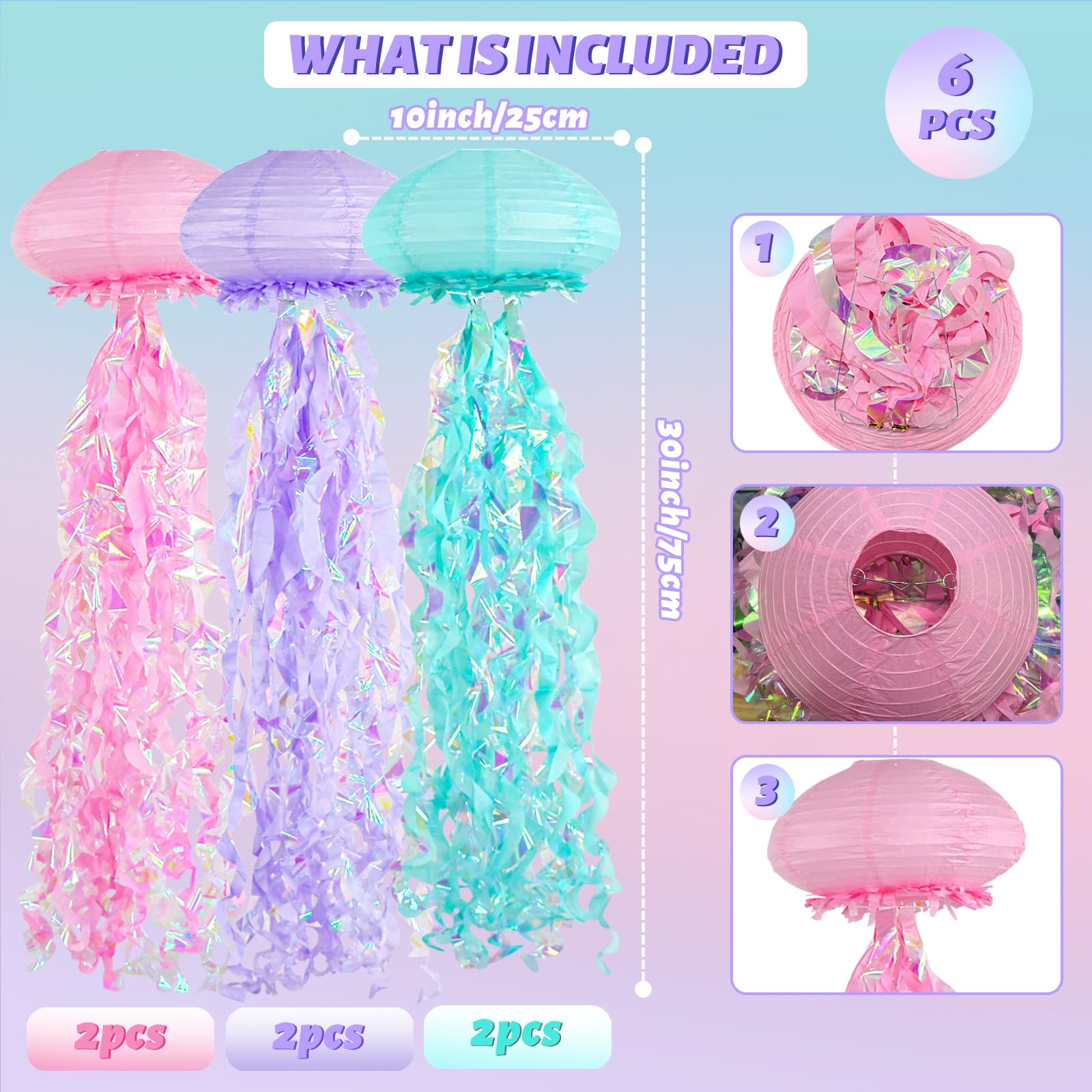 💗JELLYFISH PAPER LANTERNS: This jellyfish paper lantern consists of 6 paper lanterns, including 2 light purple jellyfish paper lanterns, 2 blue jellyfish paper lanterns and 2 pink jellyfish paper lantern. Multi-color jellyfish paper lantern decoration set is sure to be the best choice for a fun undersea party, rich colors will create a dreamlike colorful ocean world