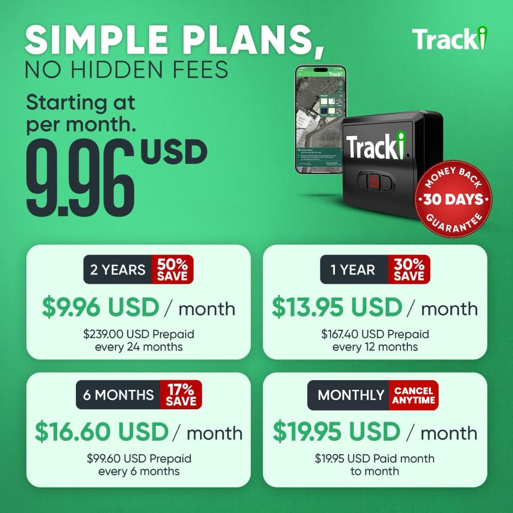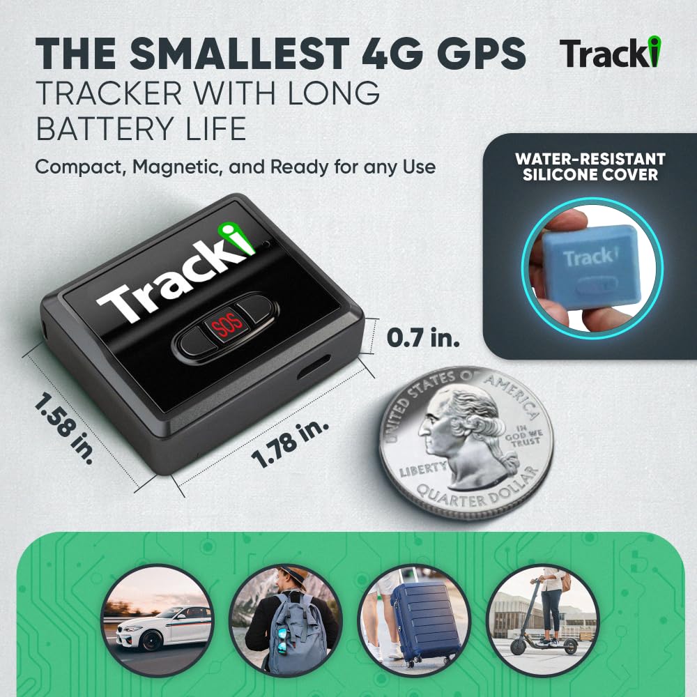 Compact & Hidden Design - Tracki is one of the smallest and lightest mini GPS trackers (1.8×1.6×0.7 in, 1.26 oz). Includes strong magnet, belt clip, lanyard & waterproof cover for hidden tracking devices for cars. Perfect car tracker device hidden for vehicles, trailers & luggage.