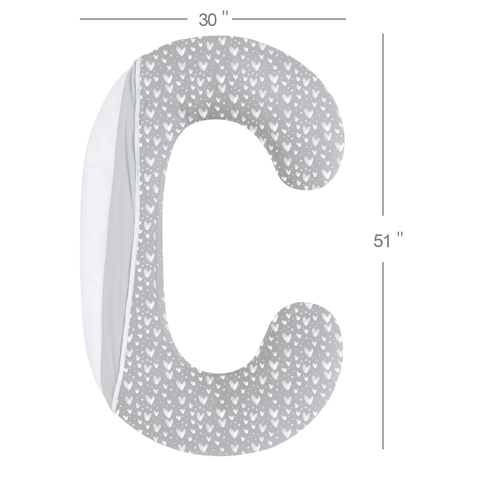 Fits perfectly: Our pregnancy pillow case is suitable for most C-Shape maternity body pillows on the market (Pillow Size: 51"L x 30"W, slightly bigger or smaller is compatible due to the stretchy fabric). But just in case, please recheck your pillow size before the purchase.