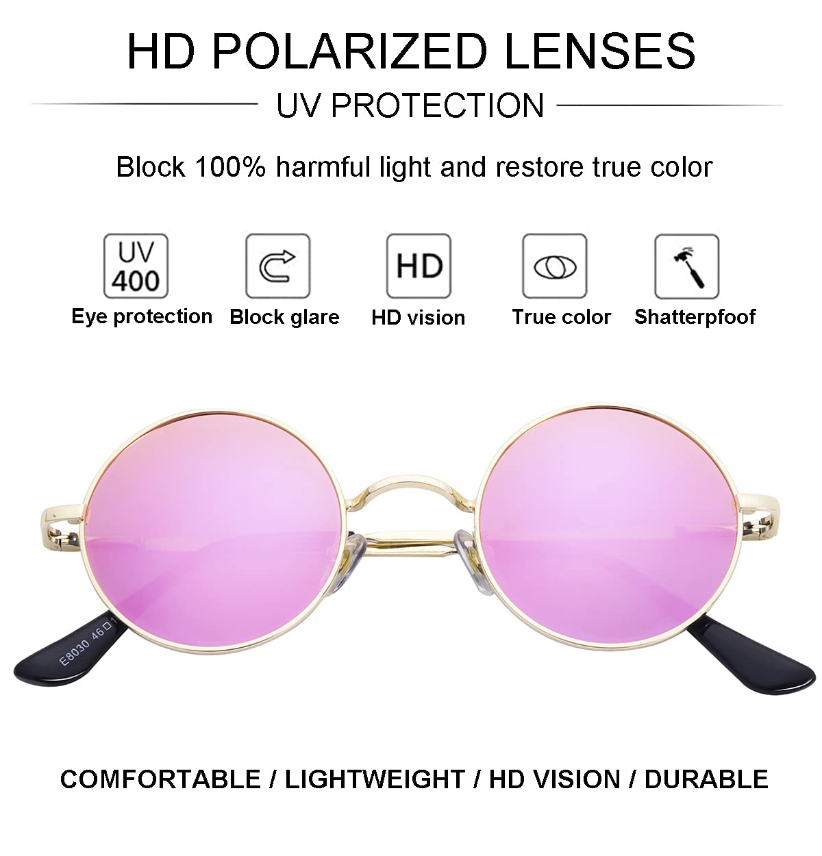 ★ PREMIUM MATERIAL - Scratch-resistant polycarbonate lens with anti-glare coating, delicate lightweight metal frame, soft and anti-skid nose pads, flexible spring hinges, these sun glasses are very sturdy and comfortable.