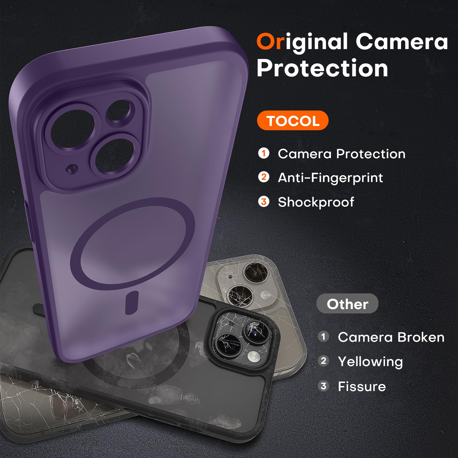Designed for Camera Safety: TOCOL case for iPhone 15 upgraded camera surround protection, integrated with the case. The camera frame is 0.8mm higher than the camera lens, which can protect your most precious camera lens from scratches and collisions
