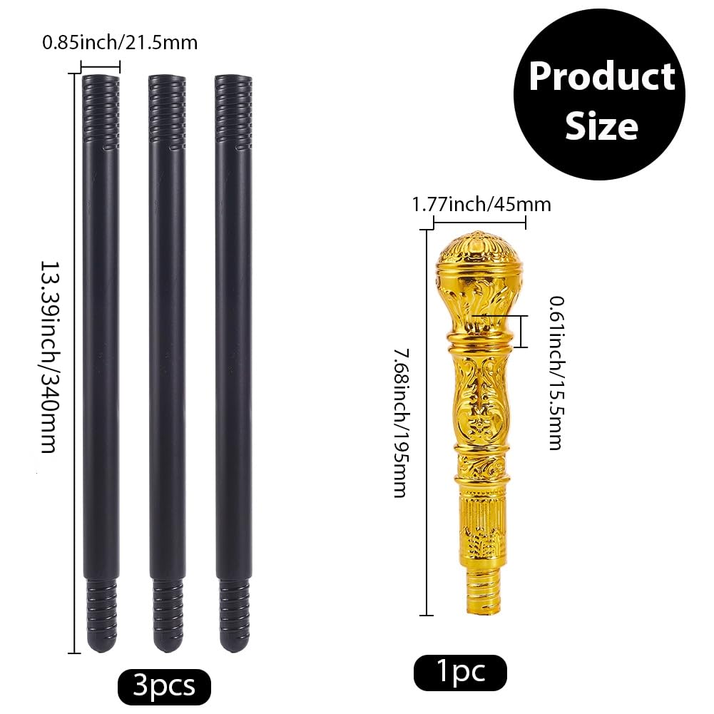 Antique Cane: You will receive 1 set of black pimp stick cane with golden ball top, which contains 3pcs of plastic sticks, 1 handle top, can be easily assembled into a whole
