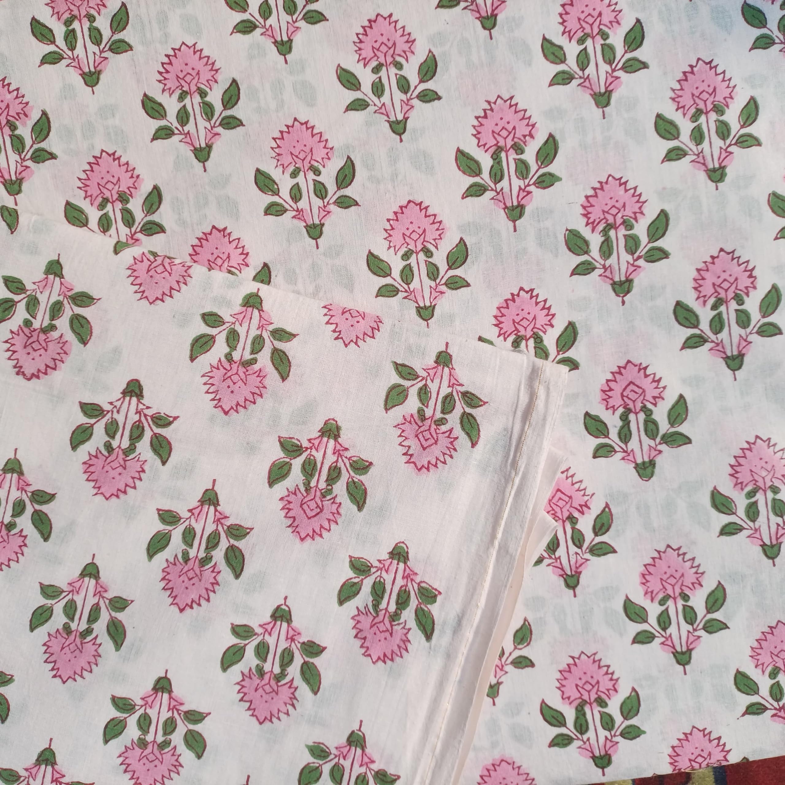 FABRIC WIDTH: 44" And LENGTH: 1 Yards. , Color: Multicolored . 100% Soft Cotton medium weight, Indian Wood Hand block fabric.