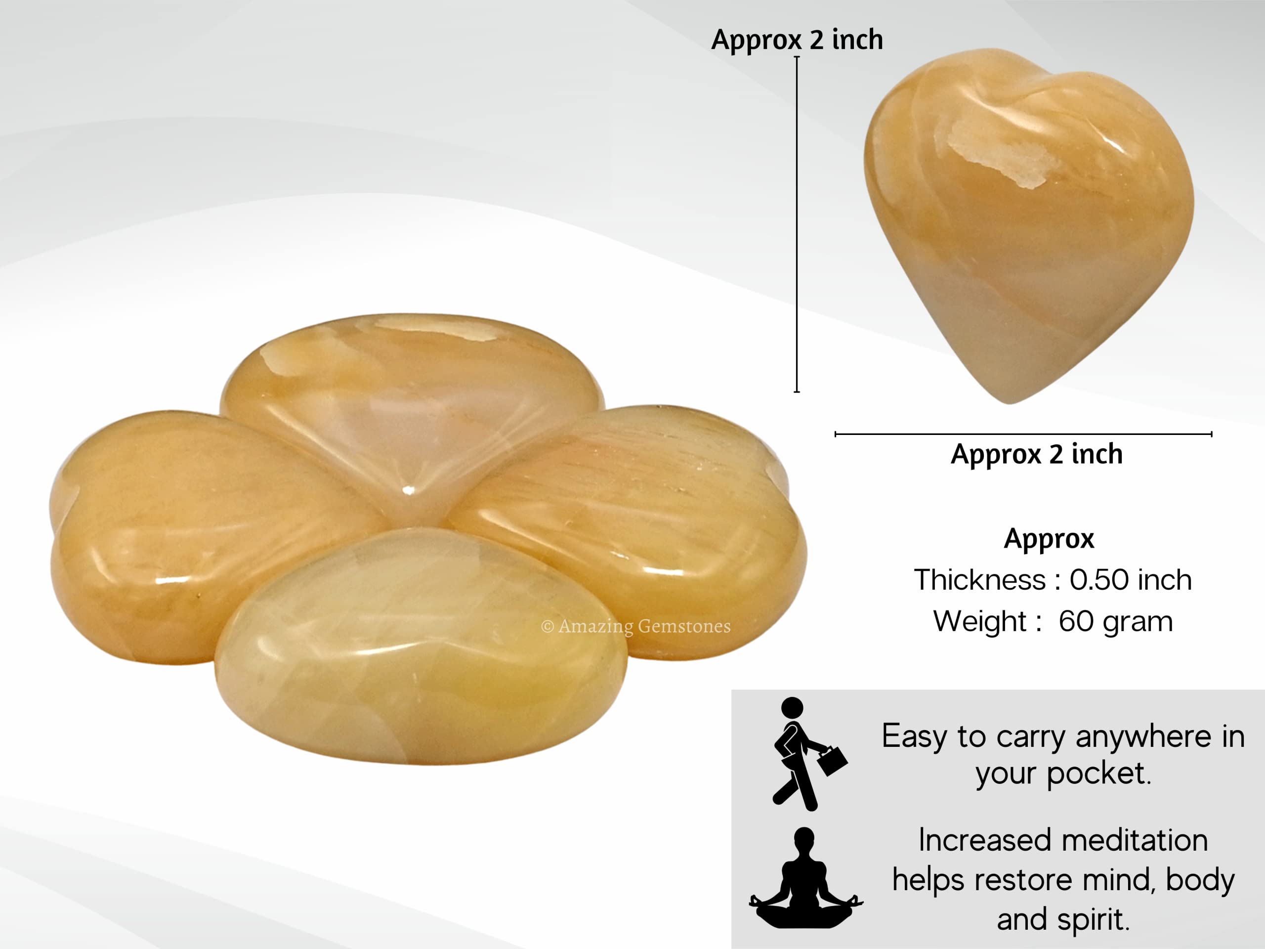 Yellow Aventurine Crystal Heart Palm Worry Stones are polished heart shaped stones that can be used for Back, Neck, Face and Feet Massage therapy, Chakra Balancing, Reiki Healing, Crystal Grid Meditation and many other esoteric healing practices.