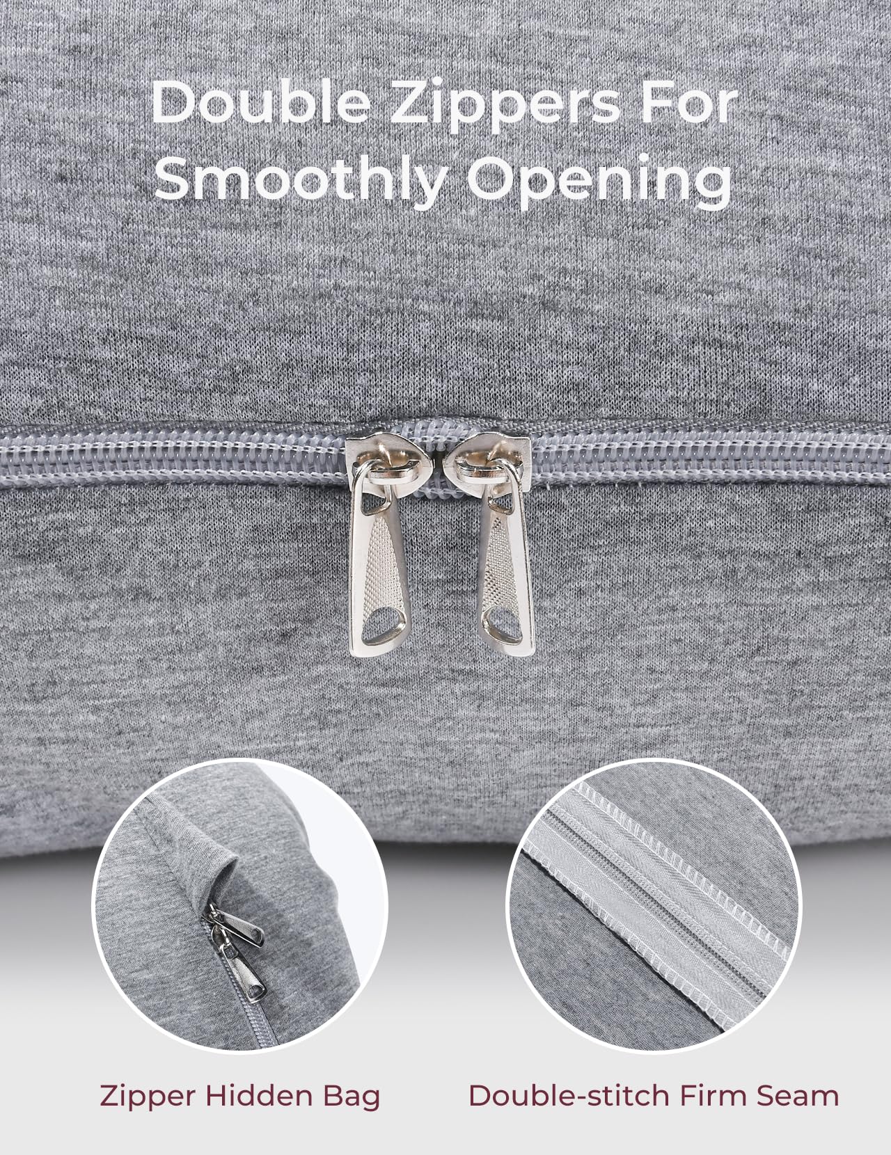 Easy-to-operate Zipper: Large sized zipper opening allows you to put in and take out the pregnancy pillow from the pillowcase in a breeze. The covered smooth double zippers avoid damaging your J-shaped maternity pillow and protects your delicate skin from any rubbing or scratching.