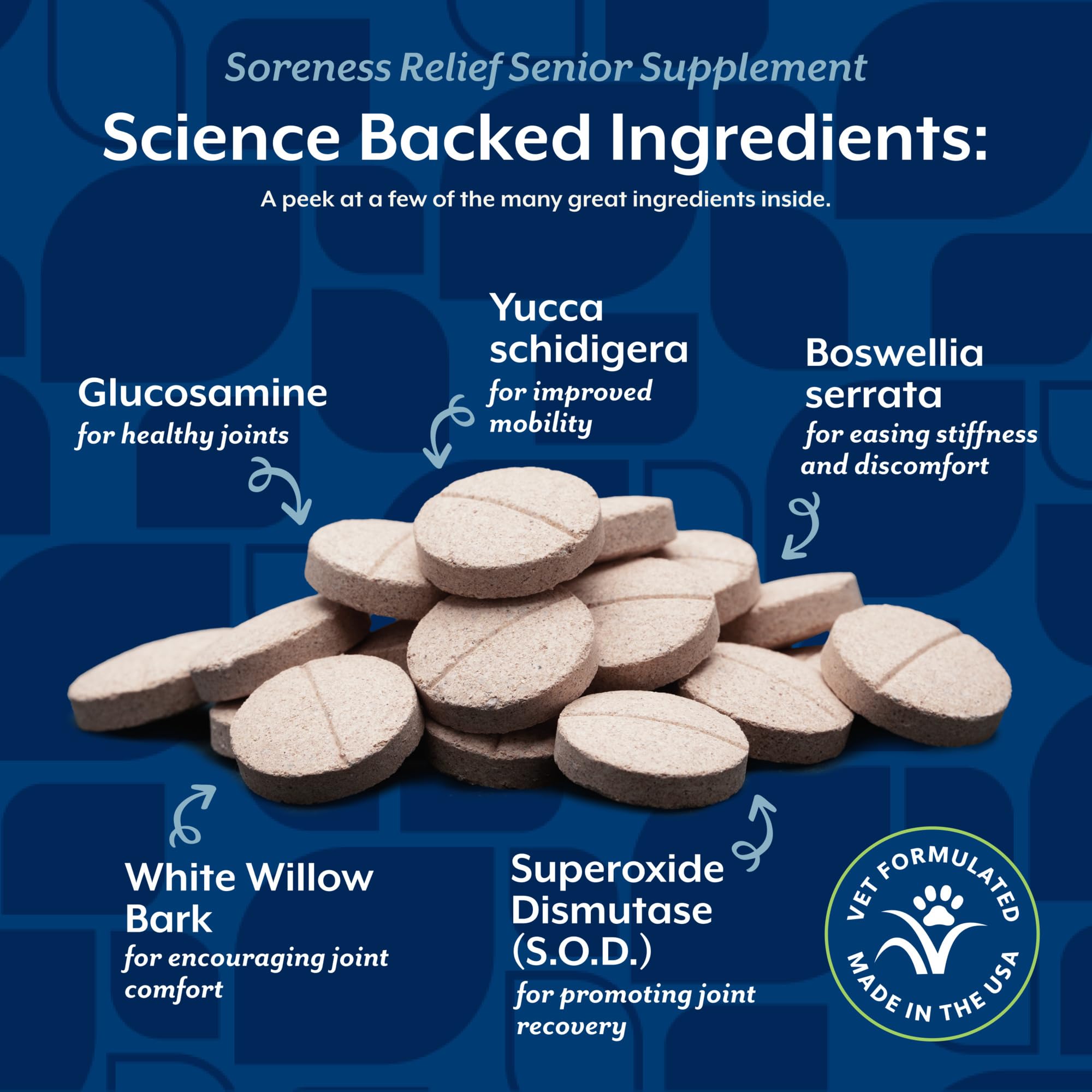 Senior Wellness Aches & Discomfort For Dogs helps alleviate aches and discomfort associated with daily exercise.