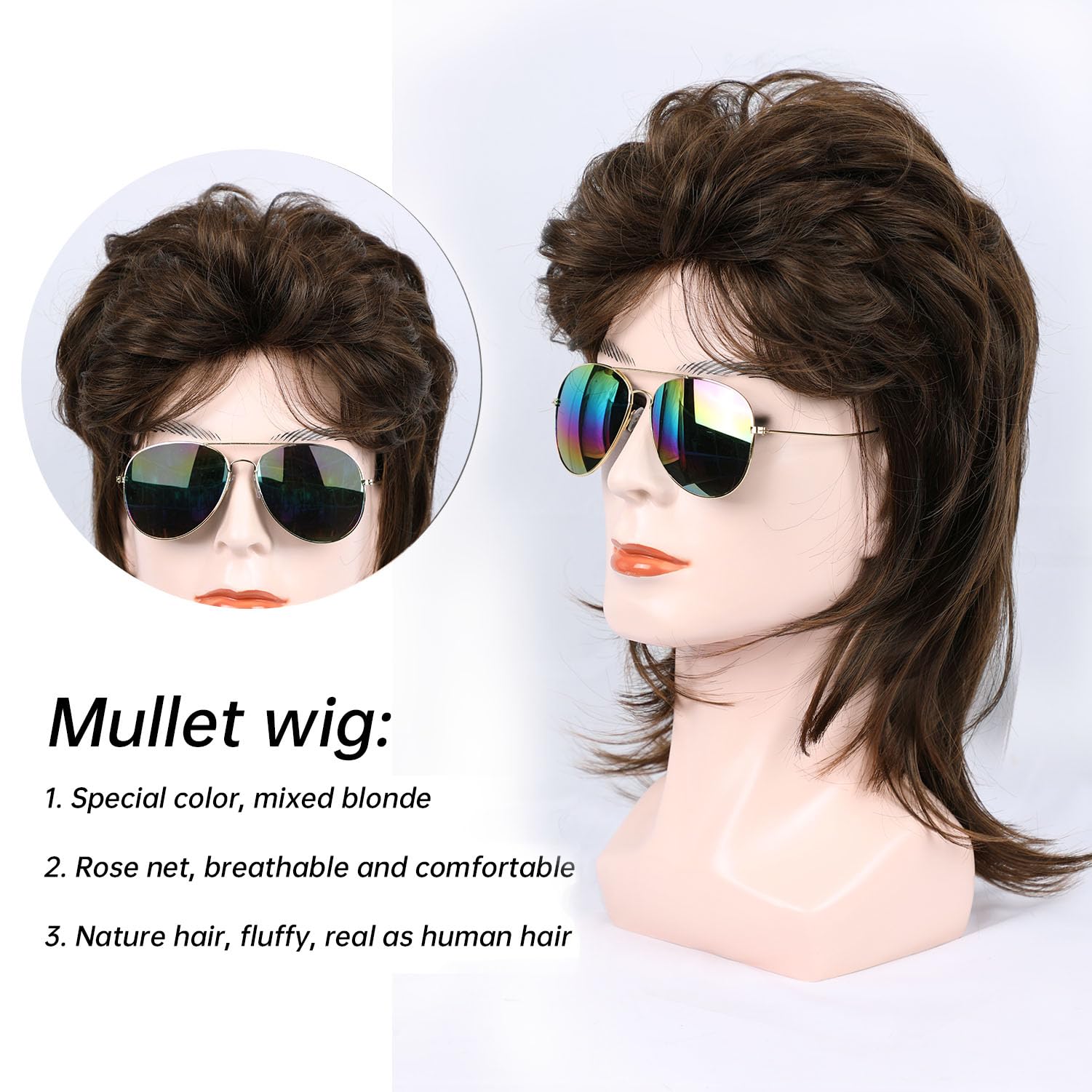 Adjustable Cap Size: Circumference 23 inches, breathable rose net make you feel comfortable. One size fits all, these are mullet wigs for men, women of all ages, 80s 70s 90s