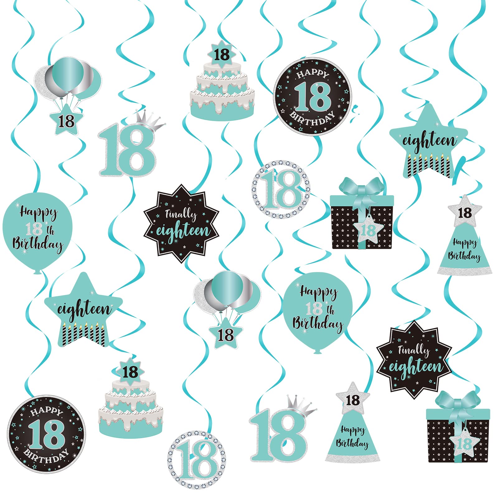 🎂 Perfect 18th Birthday Party Decorations - We offer the exquisite happy birthday decoration with a variety of color and age. Teal white happy 18th birthday balloons is ideal for girls boys 18 years old birthday party celebration decorations, 18th anniversary party decor, they can be wonderful backdrop for kids birthday party photo props which can add party a delightful fun and active atmosphere to your birthday party.