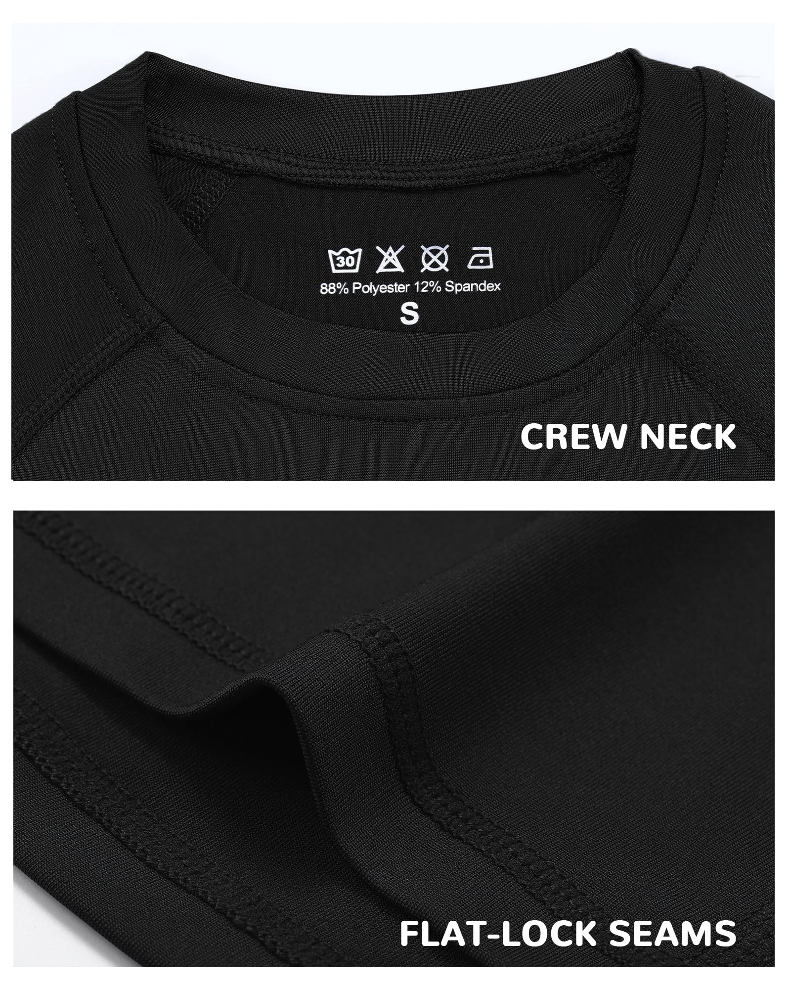 Minimalist Comfort: Meticulously designed, our boys' compression shirt integrates a rounded neckline and flat seam technology. The gentle curve of the neckline offers a soft touch, while the flat seams eliminate any discomfort, ensuring a perfect fit.