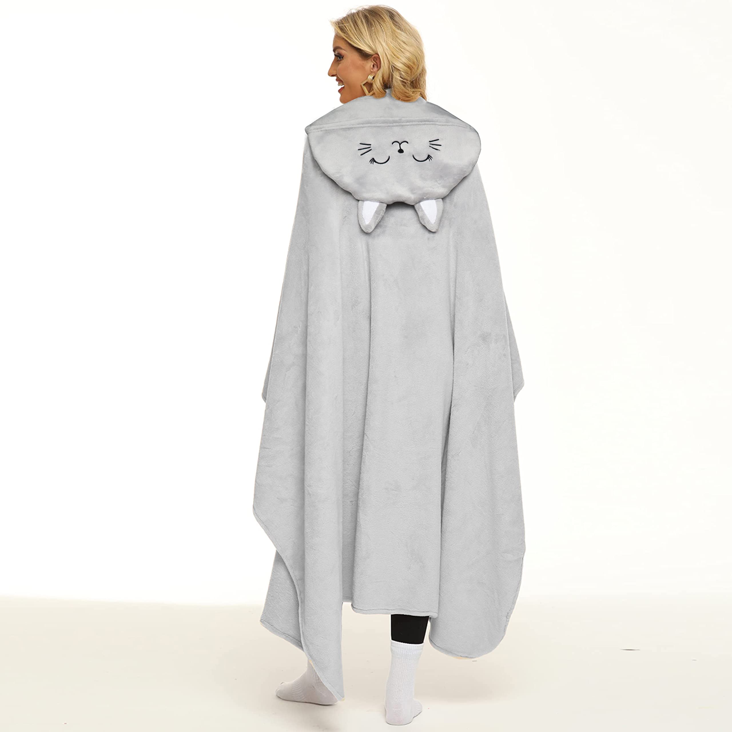 【Suitable size】the wearable blanket hoodie is 150*130cm/59*51inch, which is large enough to wrap your whole body. Perfect cat gifts for women and men, adults and kid, boys and girls, etc