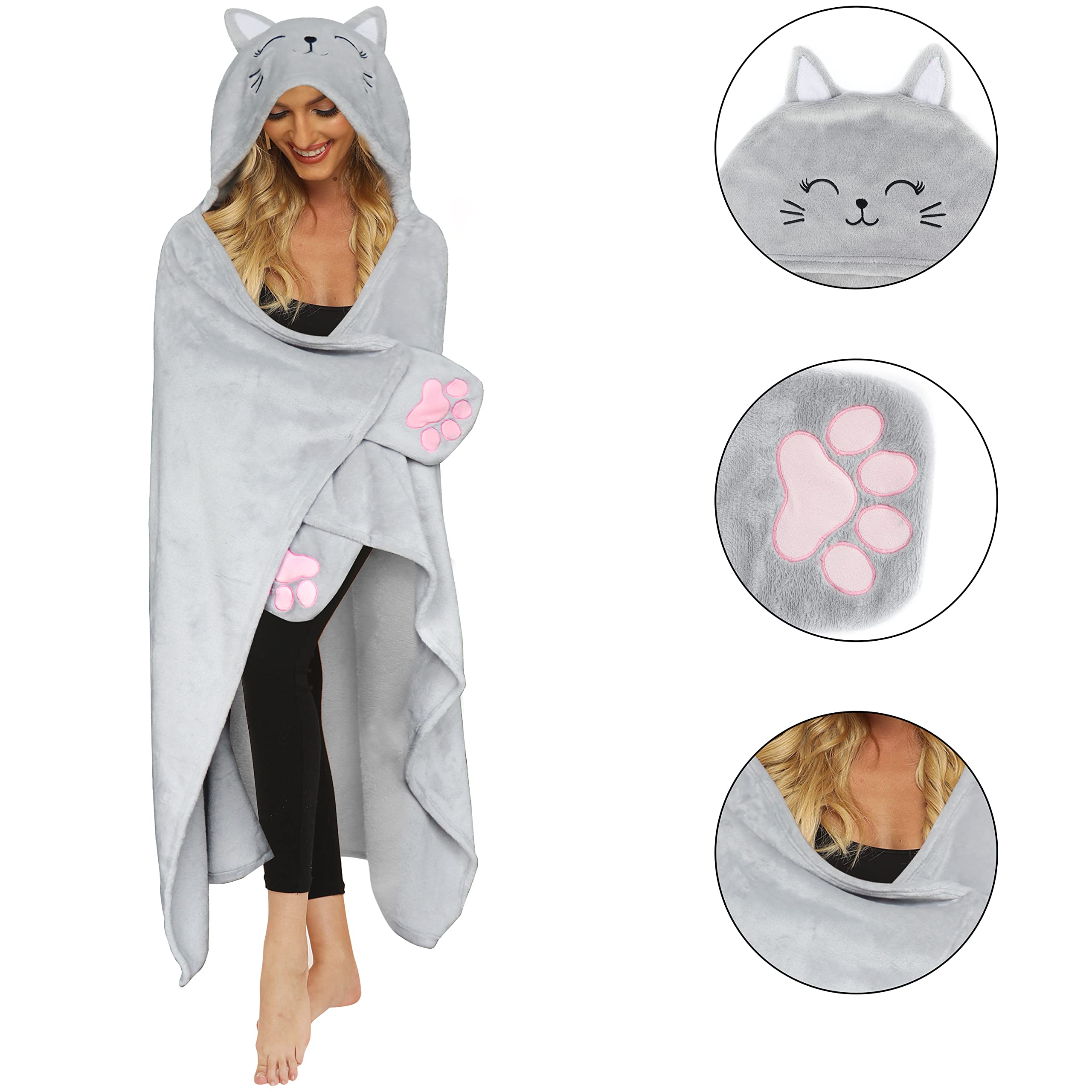 【Funny & cute】the fluffy throw blanket is designed with very cute cat shape, with fun and realistic hat. The cute hooded blanket must be suitable for many special days, like birthday, Christmas, Mothers Day, Valentines Day, anniversary day, etc.