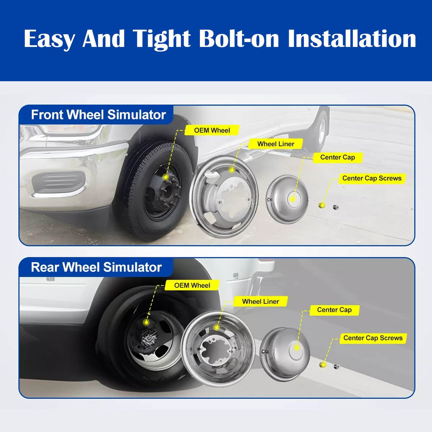 VEHICLE FITMENT: Wheel Simulators is perfectly fit for 2003-2018 Dodge Ram 3500 , Please check your vehicle's year make and model to make sure it fits.