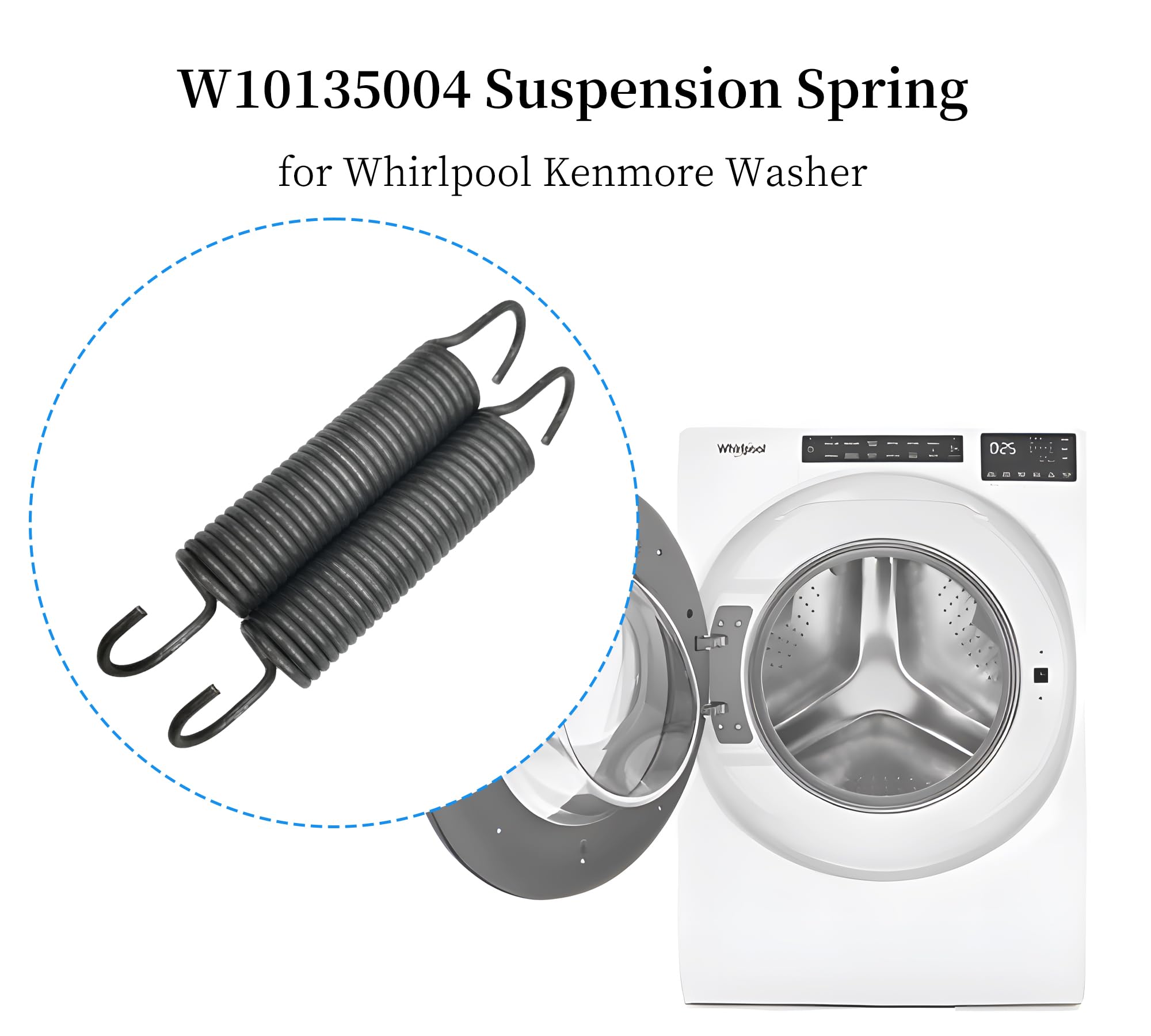 W10135004 Suspension Spring For Whirlpool Maytag Kenmore Washer 8181762 8182814 1470473 8182796 1200353 AH1485946 EA1485946 PS1485946 W10127411(2 pack ) Part Number W10135004 replaces AP4358152 8182814, 1470473, 8181762, 8182796, AH2338452, EA2338452, PS2338452, W10004300, W10127411. Made Exactly to Fit For Most Brand Washers,Compatible Brands:KENMORE ELITE,WHIRLPOOL,MAYTAG,AMANA,KITCHENAID,KENMORE. Check Description for Model Compatibility. Compatible With Most Whirlpool Washers including MFW9600SQ0 MFW9600SQ1 MFW9700SB0 MFW9700SB1 MFW9700SQ0 MFW9700SQ1 MFW9800TK0 MFW9800TQ0 MHWE300VF00 MHWE300VW00 MHWE300VW10 MHWE300VW11 MHWE300VW12 MHWE300VW13 MHWE400WJ00 MHWE400WJ01 MHWE400WR00 MHWE400WR01 MHWE400WW00 MHWE400WW01 MHWE450WJ00 MHWE450WJ01 MHWE450WJ02 MHWE450WR00 Unplug the washer before installing this part,Wear work gloves to protect your hands. MONEY BACK GUARANTEE: For any reason you're not completely satisfied, you can ask for a replacement or full refund, no questions asked.