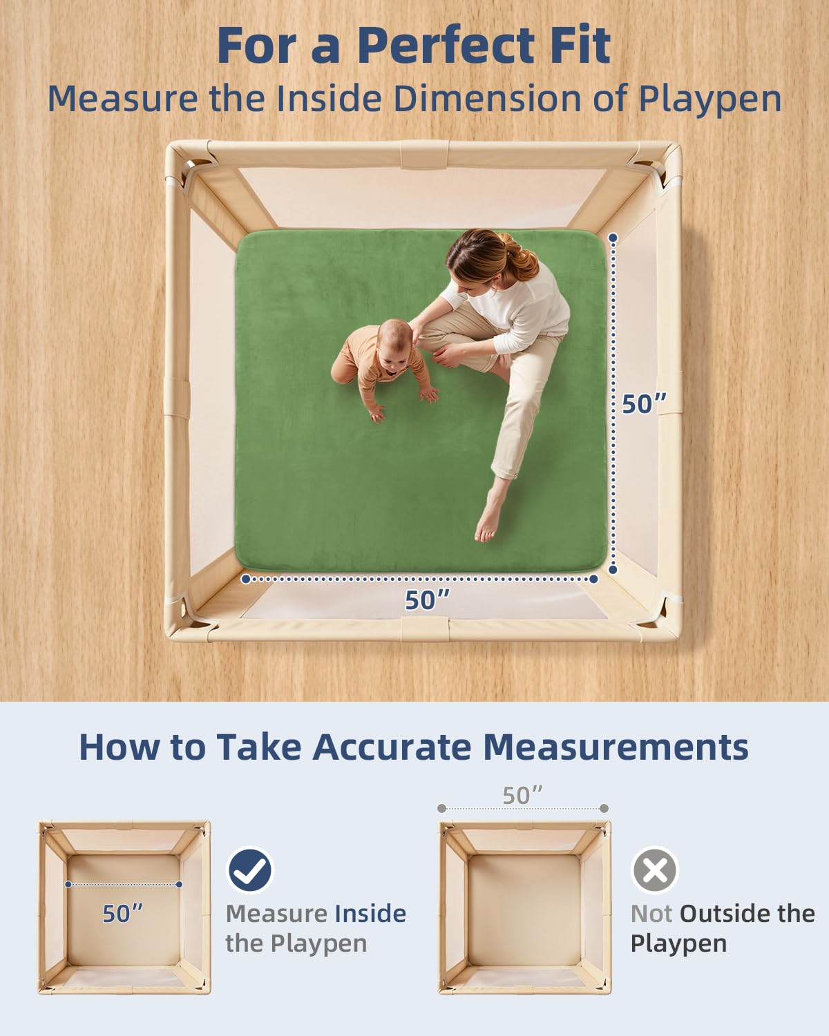 Soft & Safe Play Area: The back of the playmat for baby features a non-slip design to ensure the mat stays securely in place. This allows your baby to play and grow in a completely safe and comfortable environment. The crawling mat measures 50x50x1.2 inches, making it perfect for a 50x50 baby playpen. The thickened mat protects children during playtime, encouraging them to explore boldly without fear of falls and bumps. The simple design perfectly complements any style of playroom.