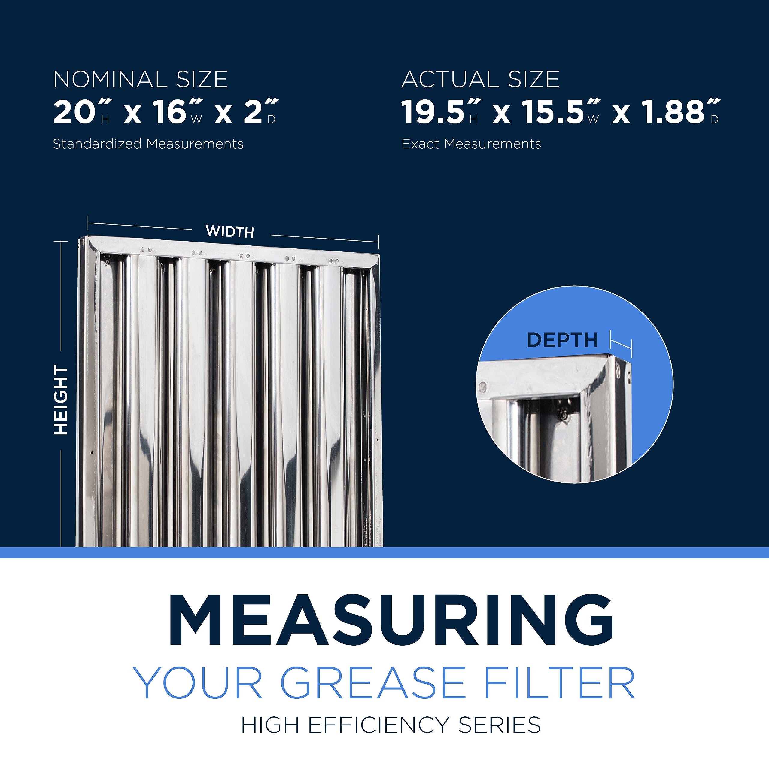 ADDED STRENGTH & STABILITY during installation and cleaning due to one piece construction and double riveted baffles to prevent racking, built-in handles, and a built-in baffle hook make it compatible with Captive-Aire exhaust hoods