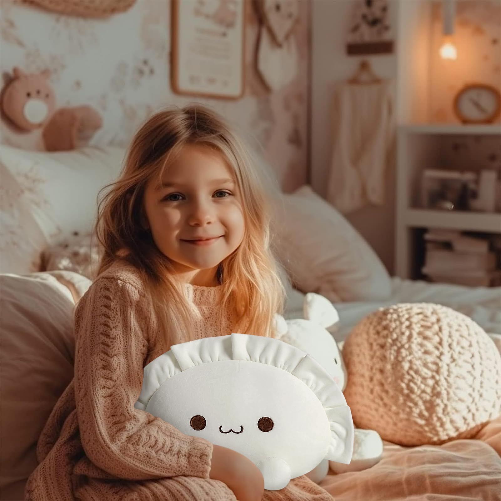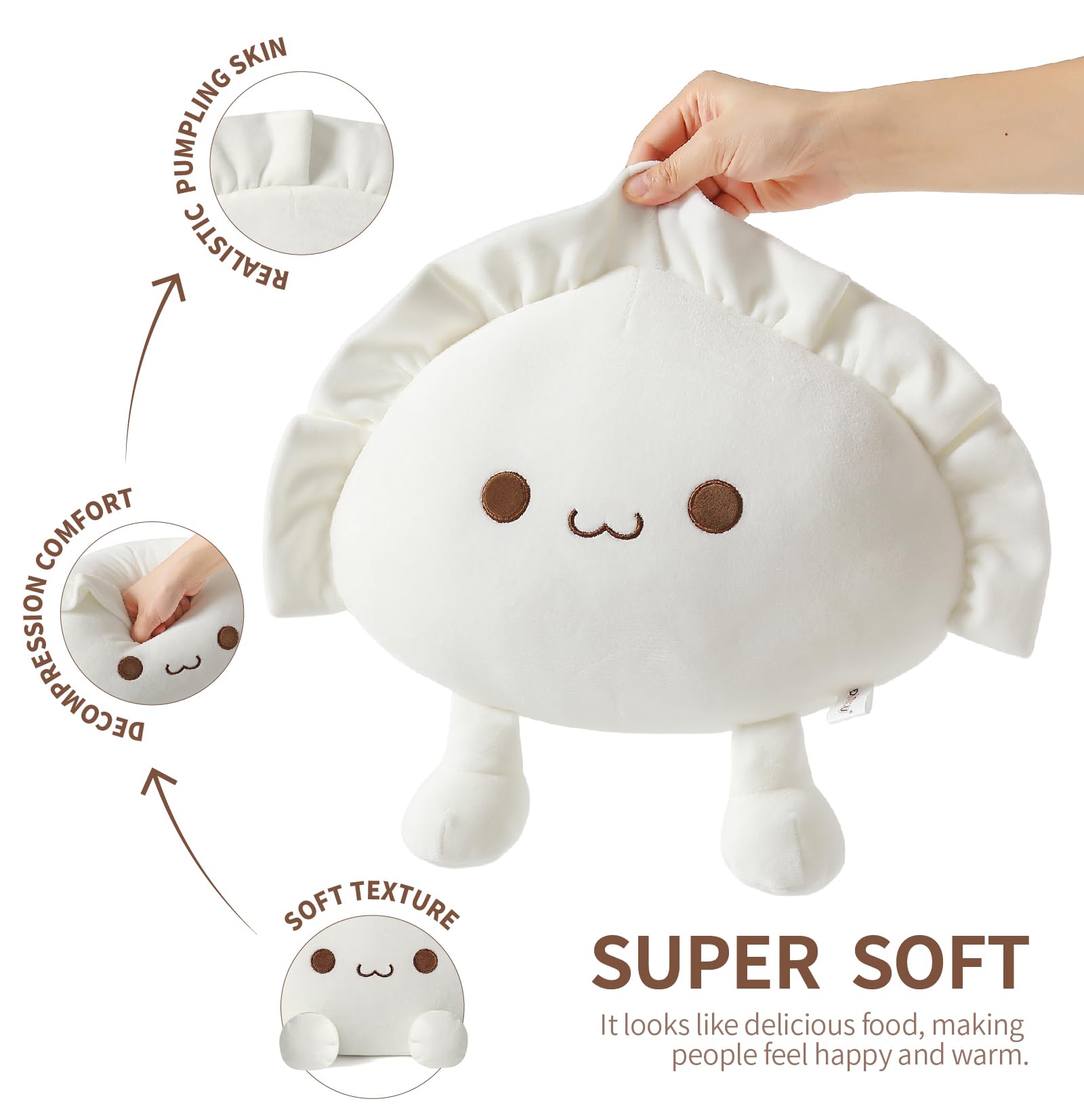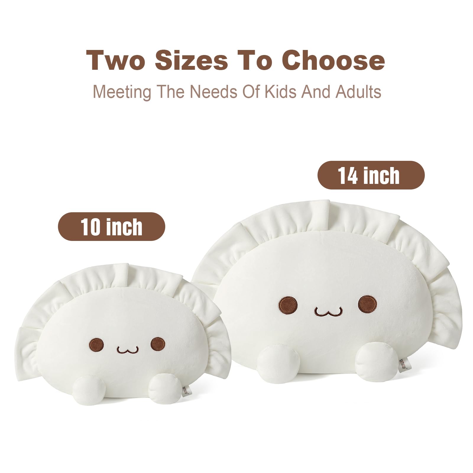 As Gift: Dumpling stuffed animal with an unique appearance and cute expression, which can be used for playing, reading, watching TV and taking a nap. It is really comfortable to hold and supprot your lumbar, we believe it will be a sweet gift for Christmas, Thanksgiving and birthday.