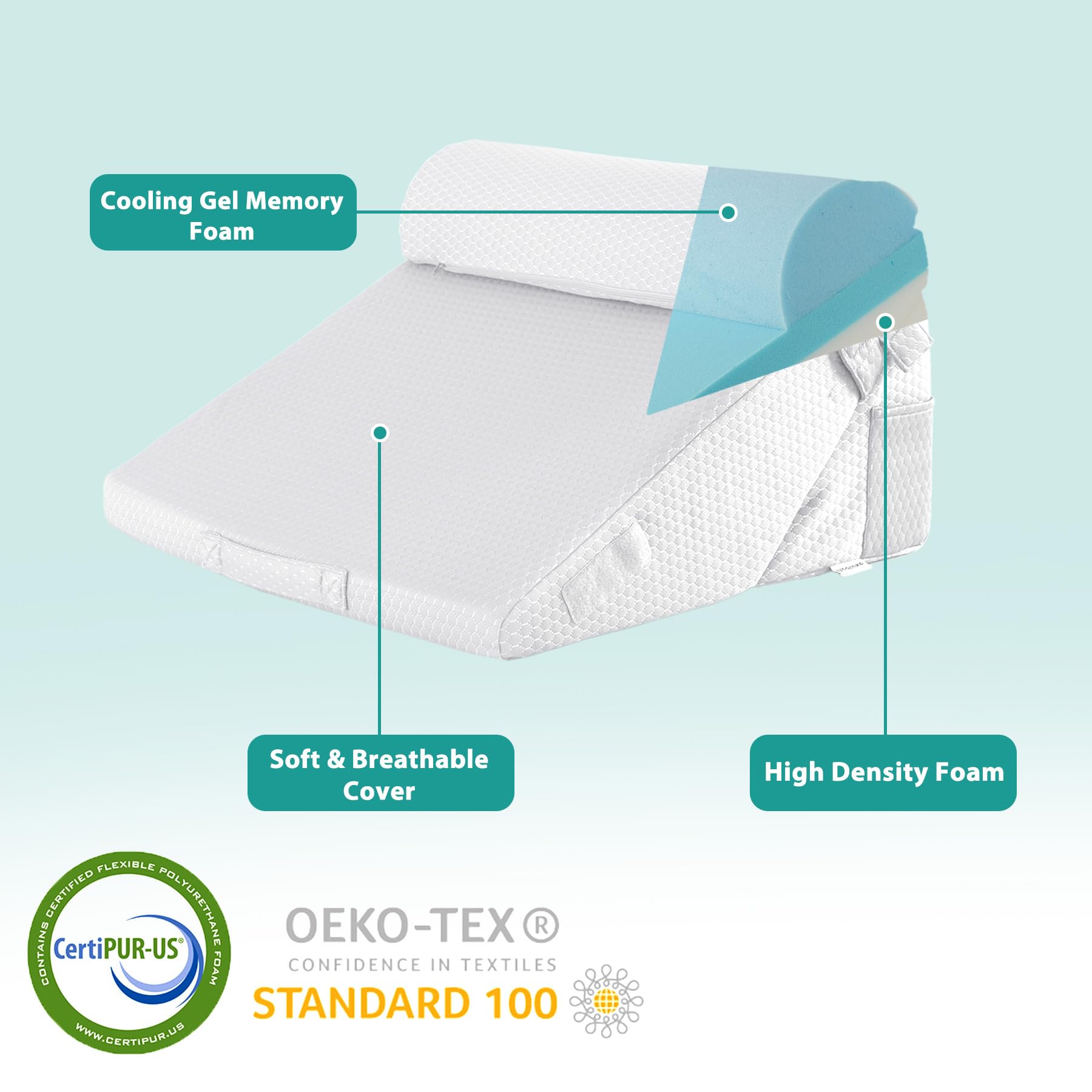 Premium Memory Foam: Our dual-layer design combines breathable memory foam atop a supportive base, ensuring a customized, pressure-relieving sleep that outperforms other wedges. The post-surgery wedge pillows conform to your body's curves, providing superior comfort and pressure relief, while maintaining its shape and support over time.