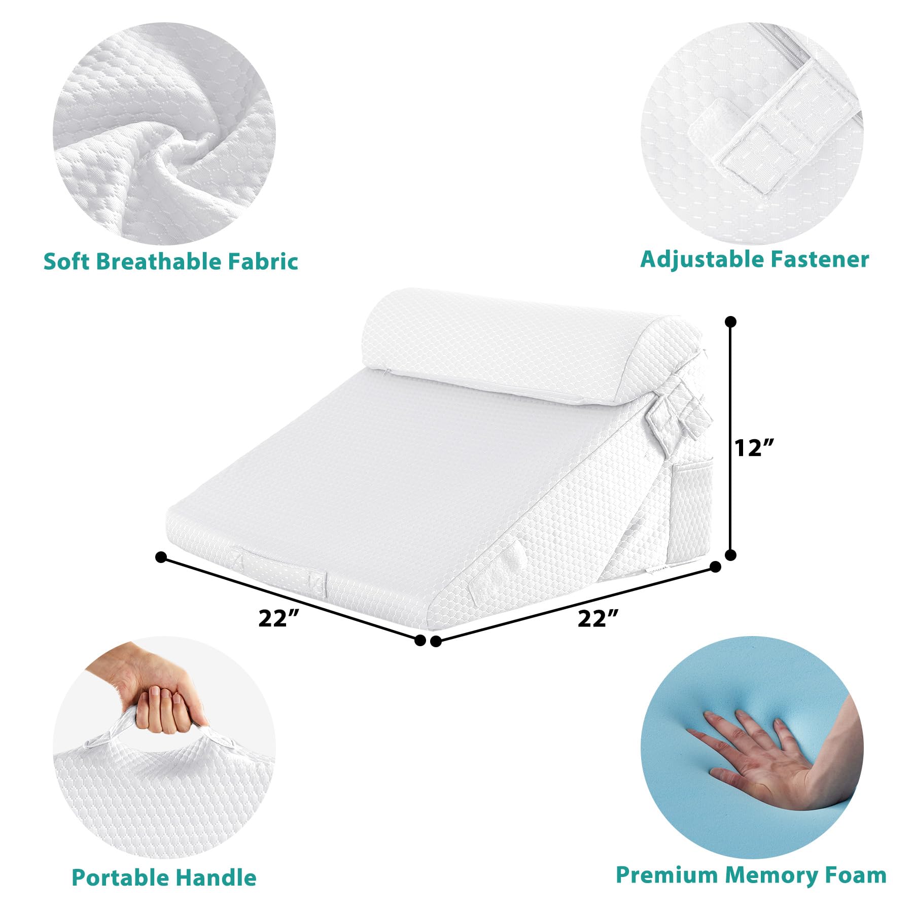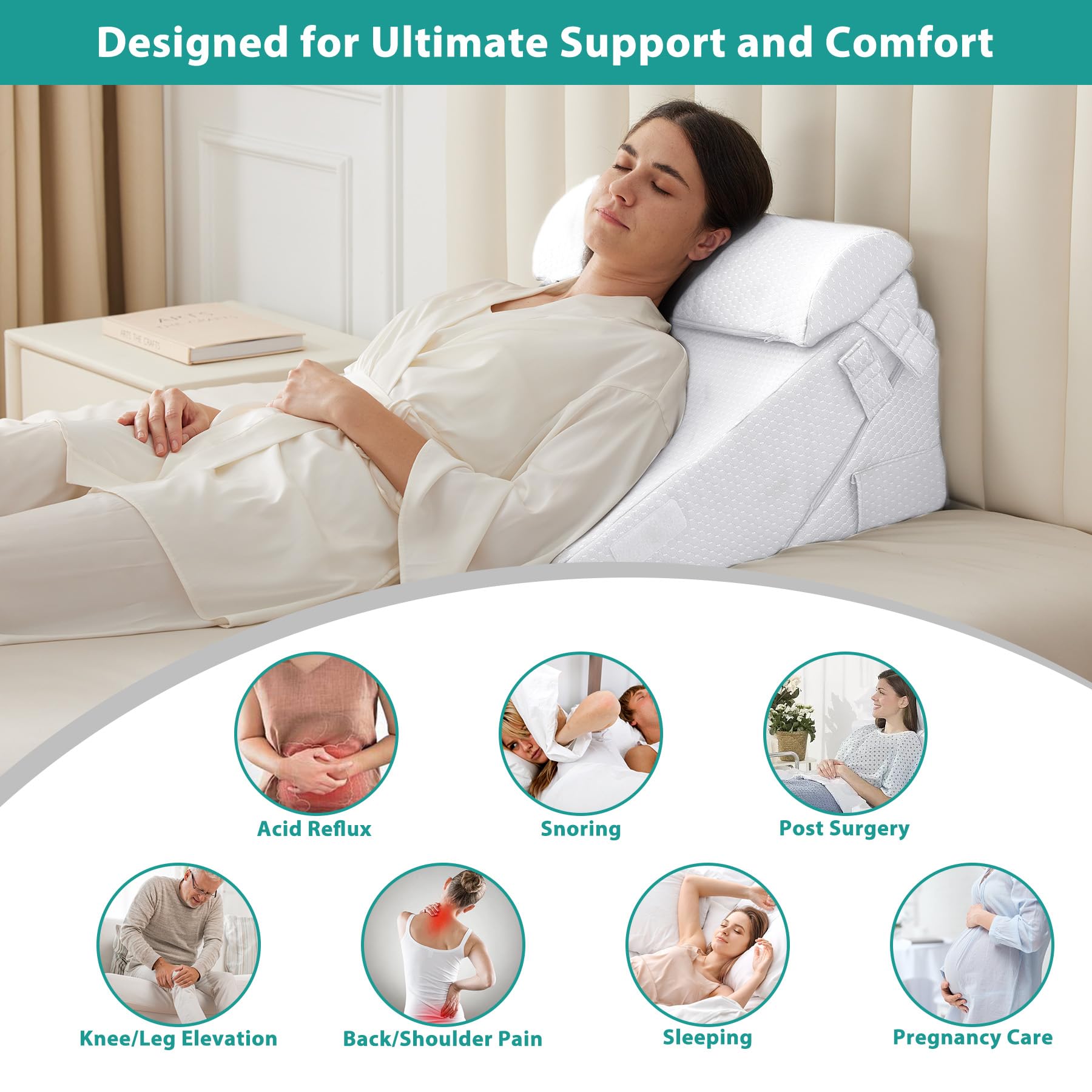 Enhanced Health Support: Designed for improved blood flow, breathing, and reduced snoring, the ergonomic wedge pillow system aid recovery post-surgery, alleviate knee, back and leg pain.
