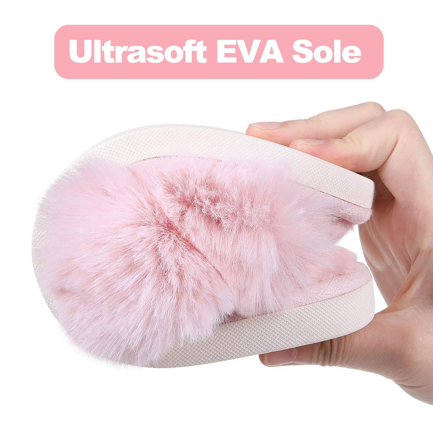 FASHION & ELEGANT: Breathable open-toe along with trendy faux fur design makes these womens slippers stylish and practical. Easily slides in whenever you want your feet relaxed.