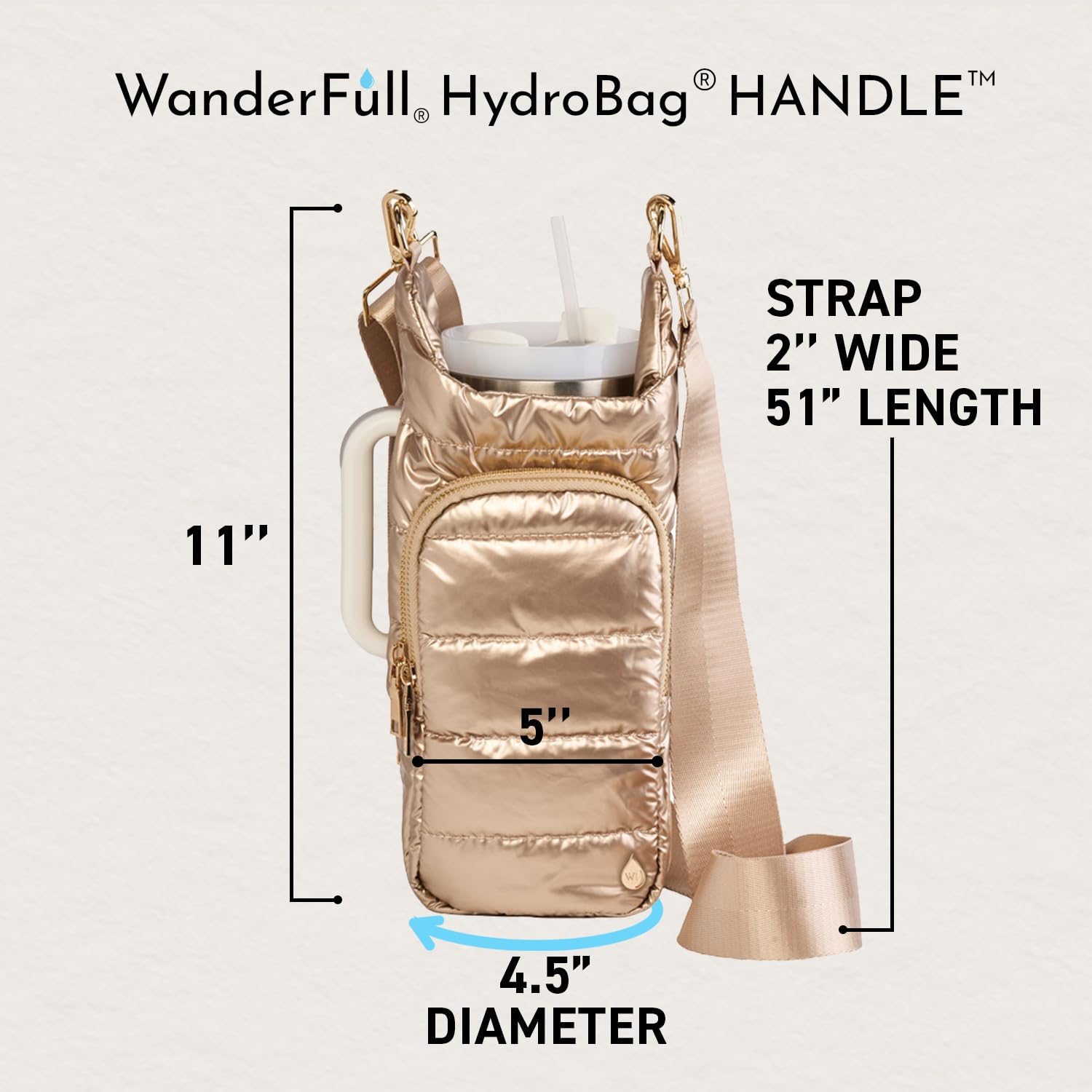 STAY HANDS-FREE & HYDRATED: Carry your bottle effortlessly with the patented WanderFull HydroBag HANDLE. Ideal for sightseeing, festivals, sports events, traveling, or walking the dog. Water bottle not included.