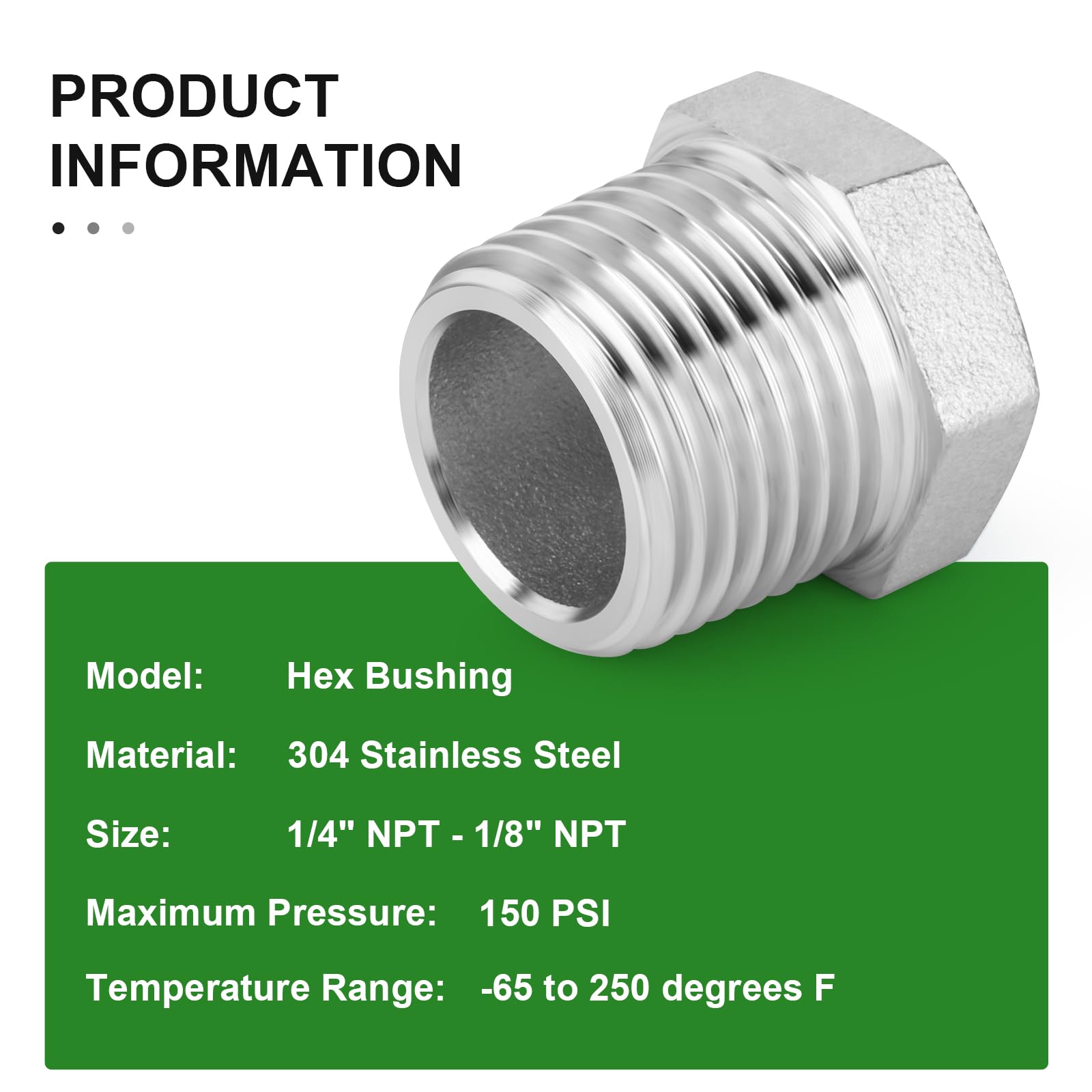 [ Product Type ] Reducer Hex Bushing(1/4" NPT Male x 1/8" NPT Female) ,for industry connecting pipes or fittings with different end types, diameters, or materials.