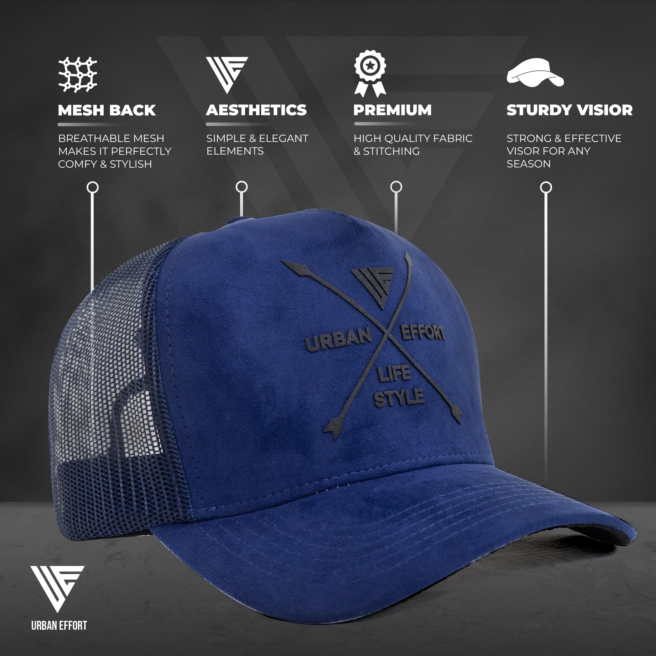 ✅Premium Quality: The Urban Effort women and man's cap is a true standout. It combines a premium combination of polyester mesh and suede fabric for comfort, along with intricate details that make it truly unique. With its exquisite craftsmanship, this cap is made to last. It's made of 100 percent polyester for durability and is a super comfortable, adjustable hat with a snapback.