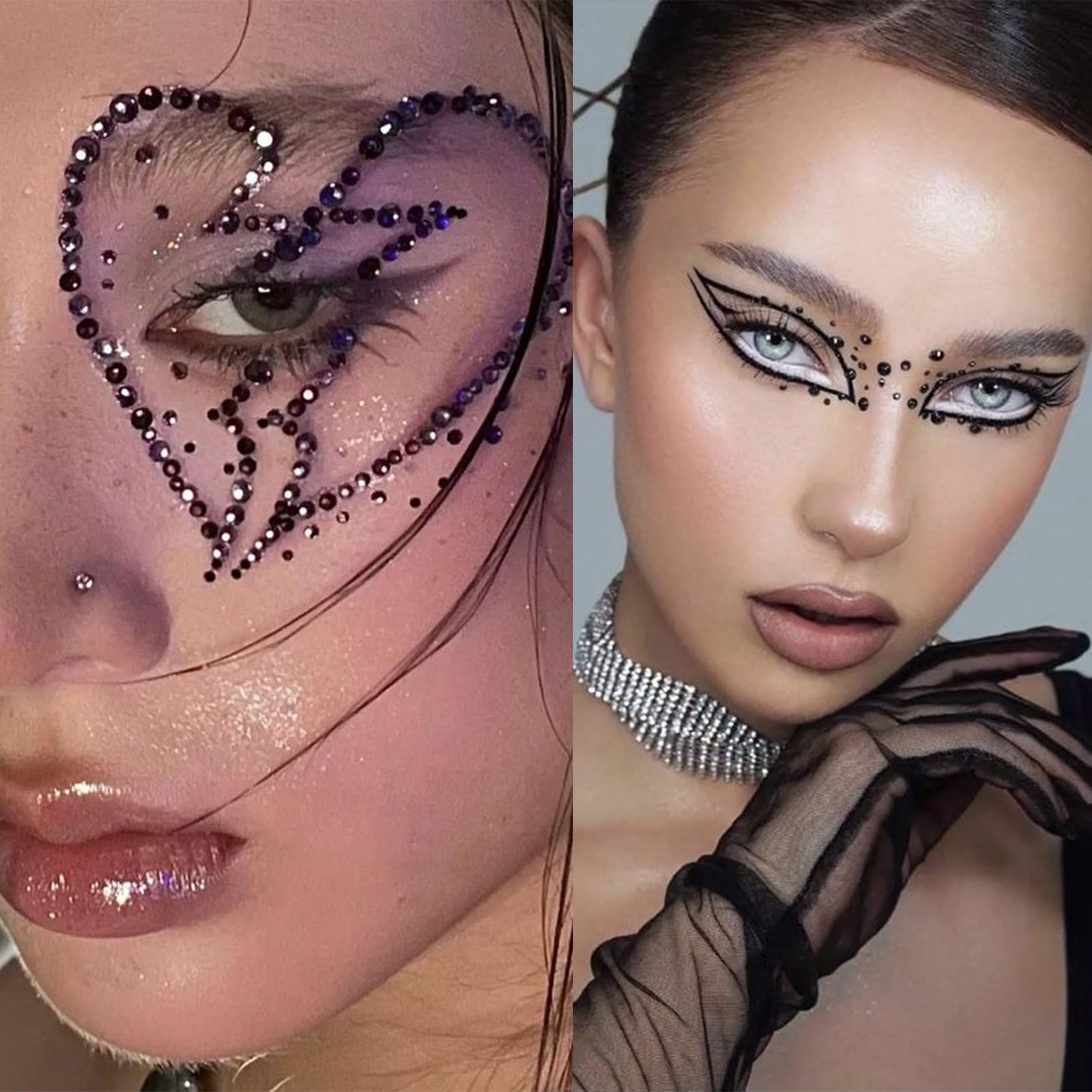 💎【Fairy Accessories-Durable and Reusable】: Each body glitter face jewels for makeup is backed with glue. The face glitter rhinestones for makeup can be used over and over again. When the glue dries, rhinestones can be used again with eyelash glue.