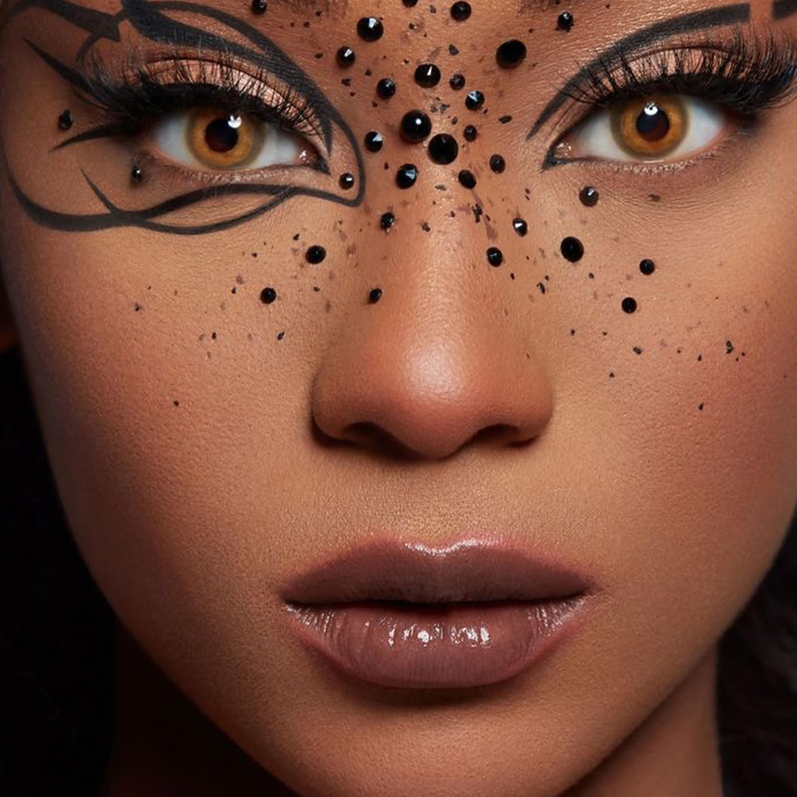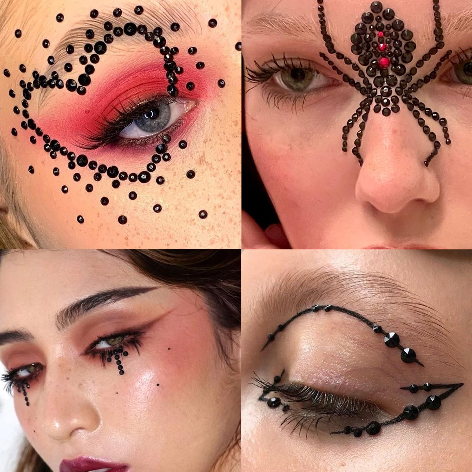 💎【Black Face Gems Festival Accessories Package Included】: Face jewels for makeup rave accessories- 3 sheet, a total of 486pcs black face rhinestones face glitter with 4 sizes(3/4/5/6mm);And a mint green tweezers.