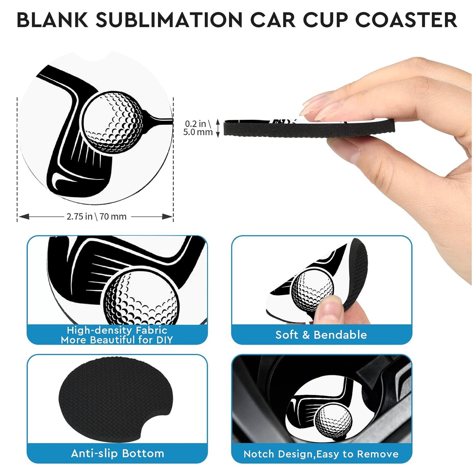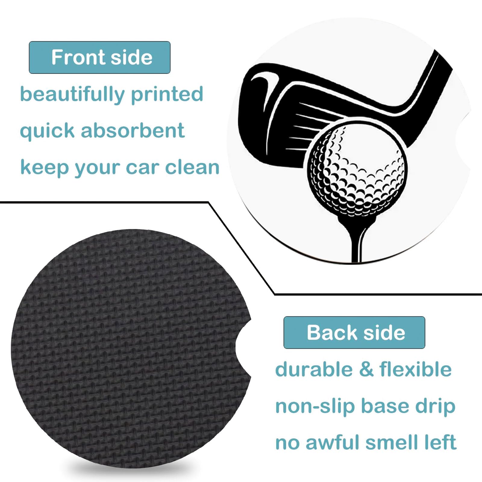 ✅Golf Design: Upgrade your ride with our Golf Themed Car Coasters! Perfect for Golf lovers gifts, these durable,non-slip coasters add a some sporty atmosphere to your vehicle. Easy to clean, they’re a must-have for road trips and daily commutes. Embrace the legend today!