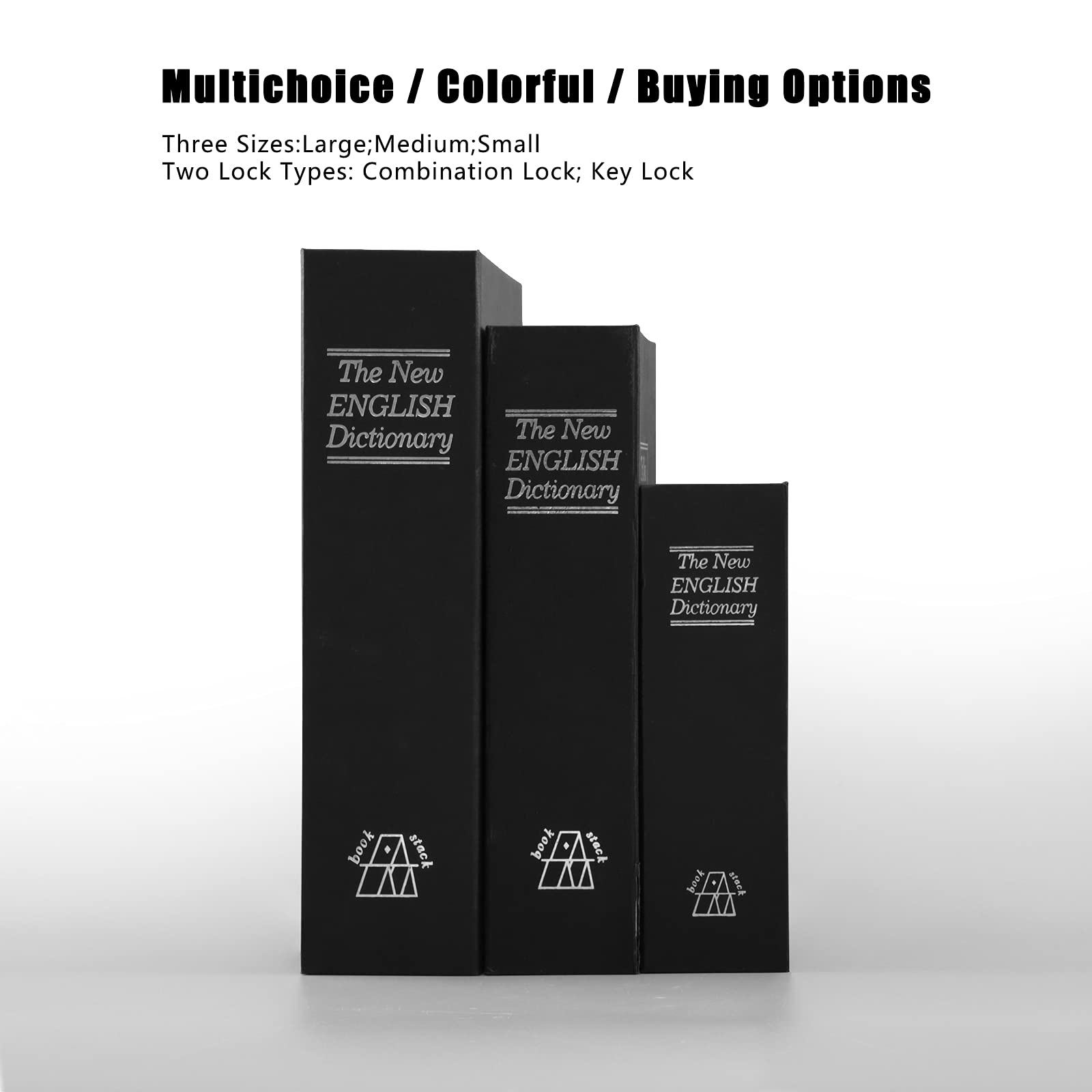 Size and Color: Book safe is 10.5" x 7.8" x 2.6" Black Extra Large.