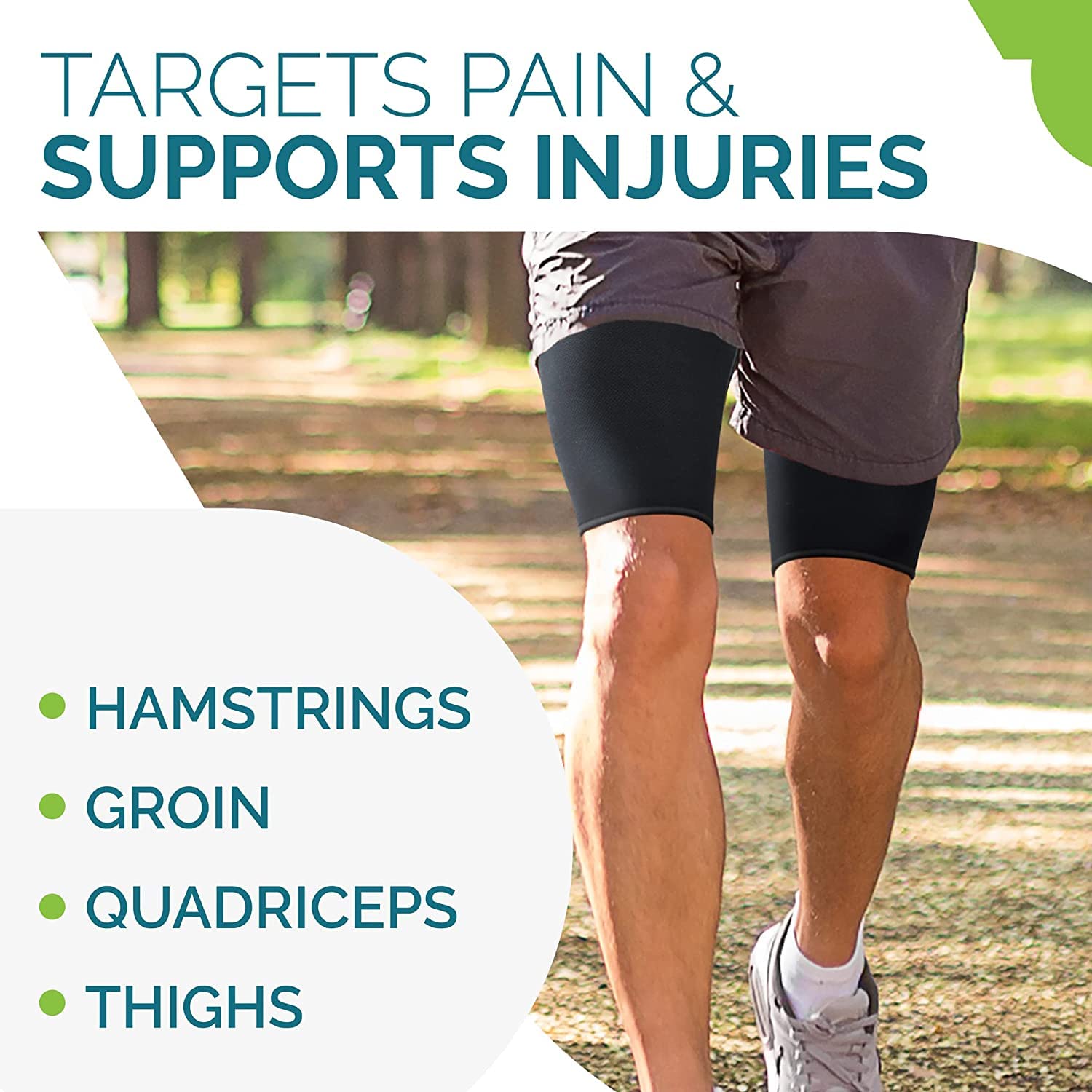 Thigh Wrap for Effective Support: Our thigh compression sleeves provide maximum support for your legs to help you go the extra mile! Designed to support injury recovery, thigh & sciatica pain relief, bursitis and pulled hamstring