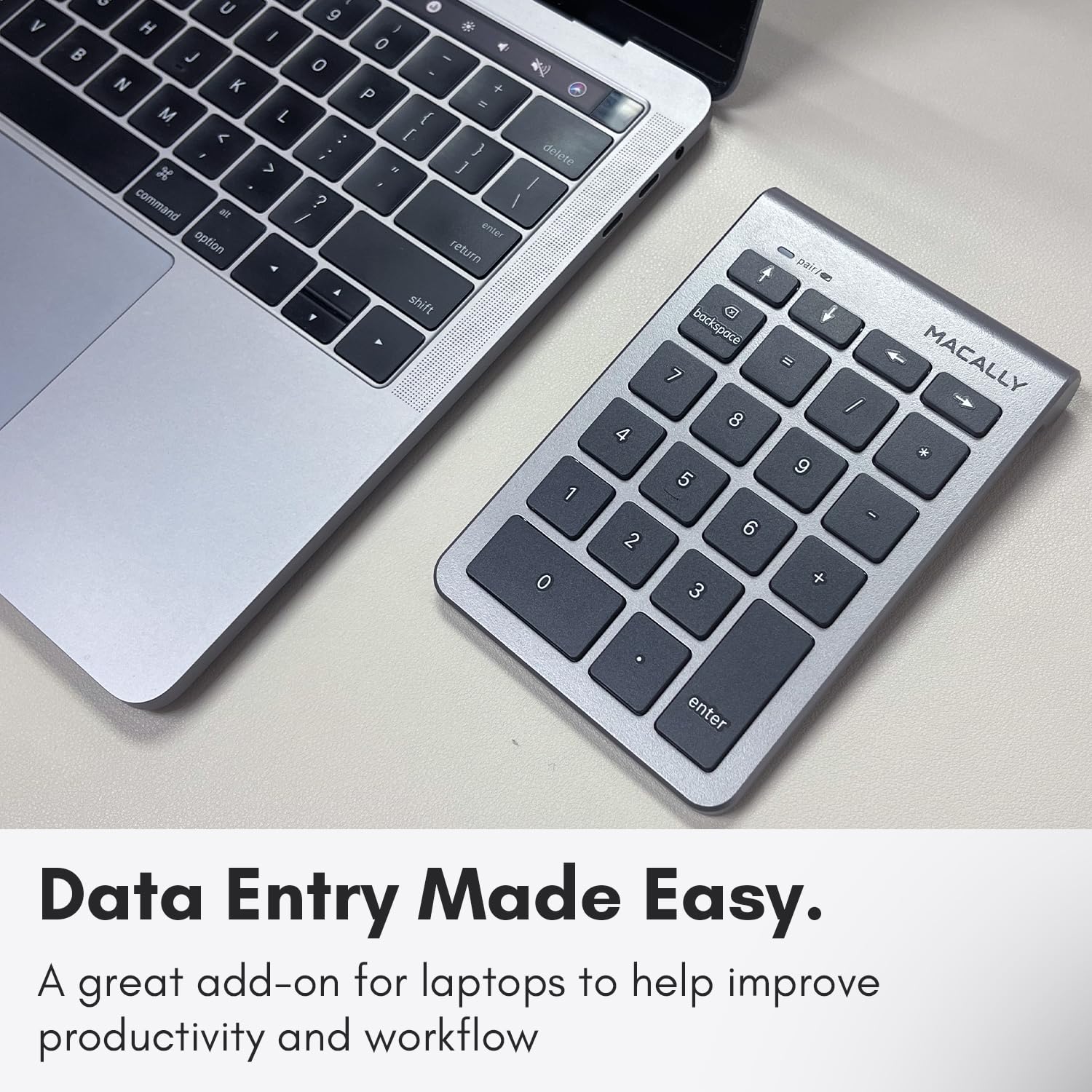 SUPER EASY DATA ENTRY: With 22 full-size keys (enhanced with scissor switches & quiet keycaps), plus left, right, down, up arrow keys, this wireless number pad is the perfect add on extension to your laptop or compact keyboard.