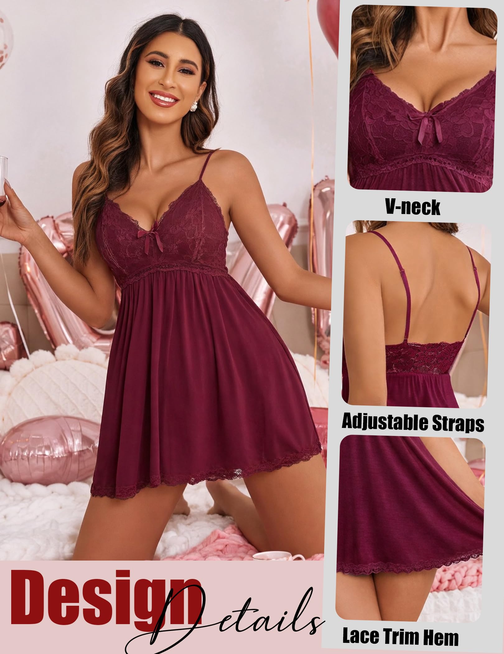 ❤Unique design: Babydoll lingerie nightgown for women features floral lace patchwork on top, well scalloped lace trim on the edge of flowy skirt bottom, mini bow decor in the middle of lace cups, enhance women femine charms.