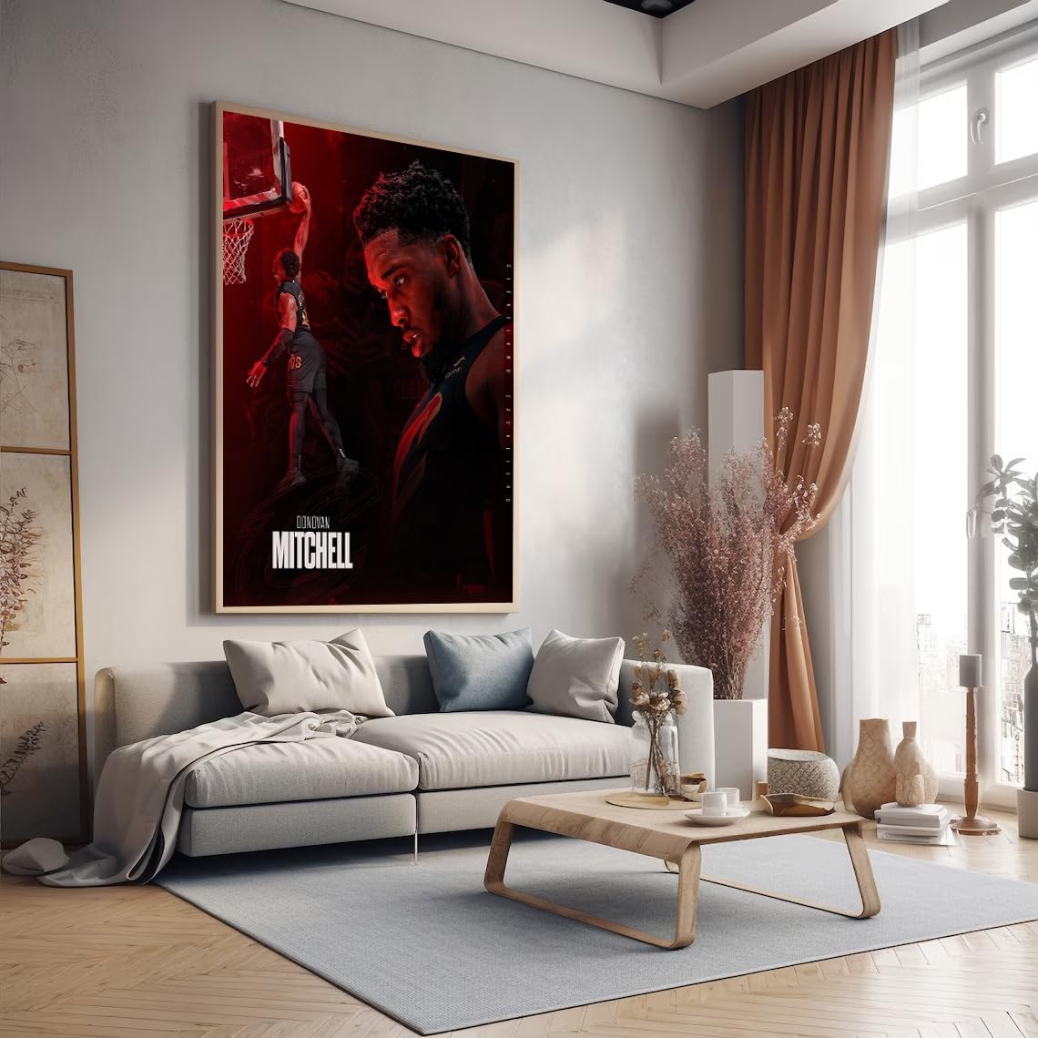 Wooden Frame: If You Choose A Wooden Frame, We Will Install The Picture On The Wooden Frame, And Protect And Transport It Carefully. Donovan Mitchell Poster Framed Canvas Posters A Perfect Gift For Your Relatives And Friends On Birthday,Wedding Day,Anniversary,Man Gift, Dad Gift,Father Day,Festival Etc.A Perfect Choice For Wall Decoration And Home Decorations.