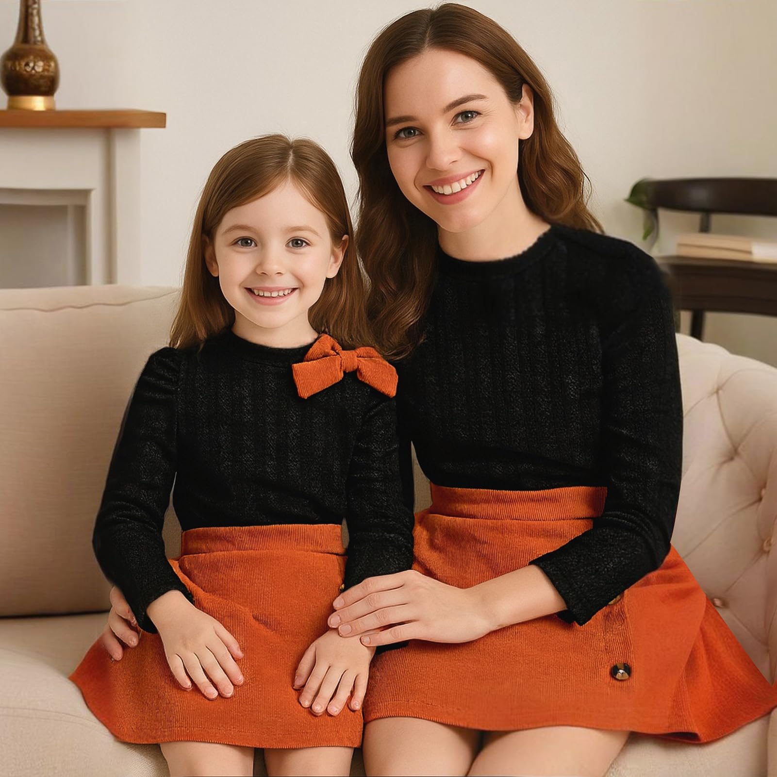 Design: Kids Little girl spring fall winter skirt set,knitted cotton long sleeve solid color top, button mini skirt with elastic waist , winter fashion warm toddler girls clothes outfits.