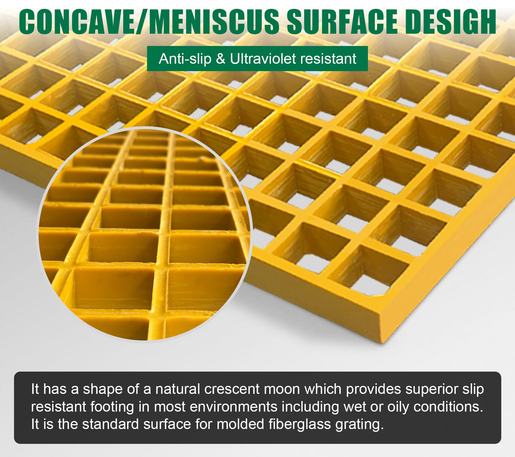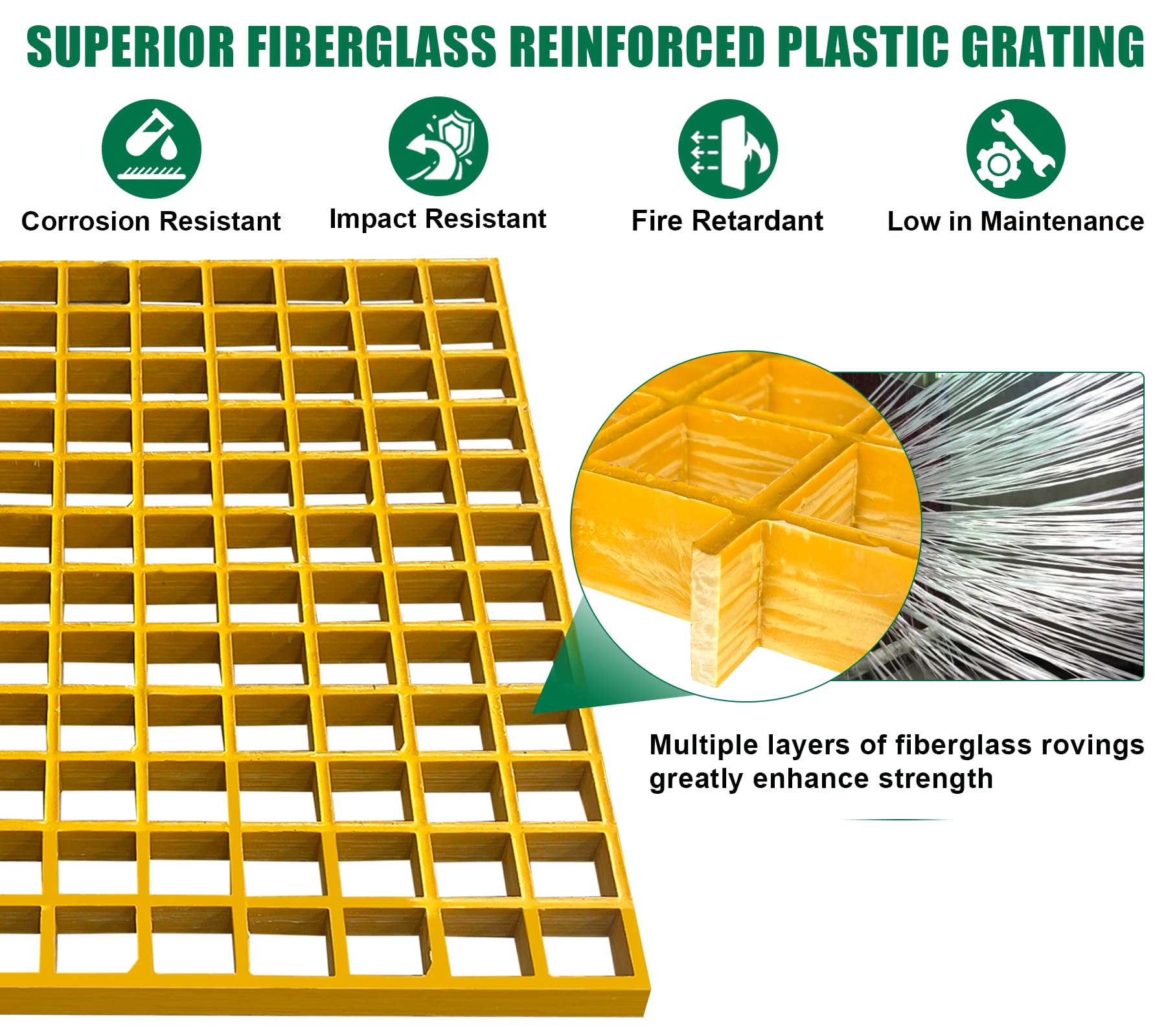 【Features of Superior Fiberglass】Upgrade your industrial spaces with Natotela molded fiberglass grating, delivering unparalleled durability, corrosion resistance, low maintenance needs and long service life.